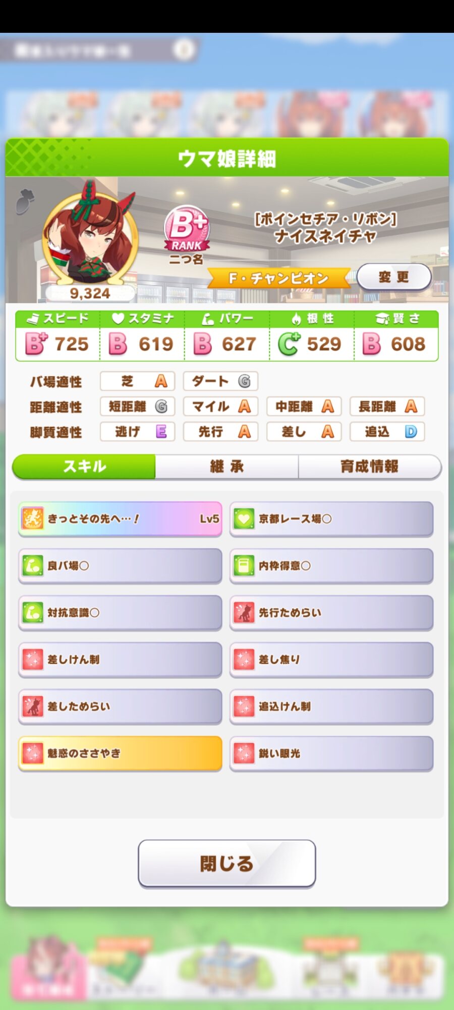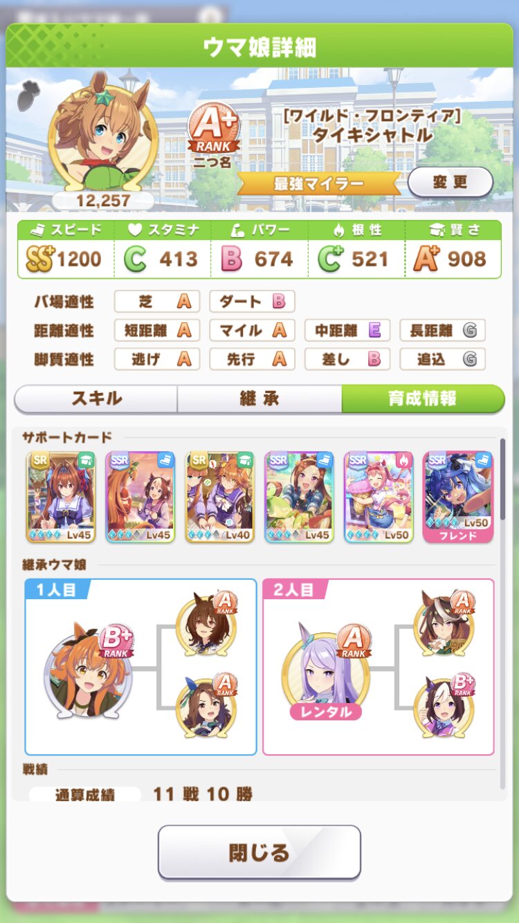 個人的な意見になるけどマイルSにするためにマイル因子とスピスタの因子両方集めることにちょっとくらっとした