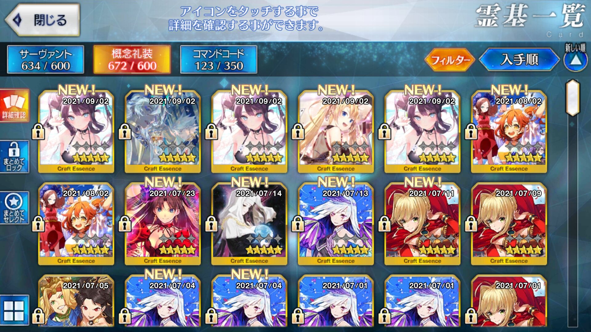 宝物庫と種火の周回がWキャストリア+村正(たまにパーシファル)で固定されている。