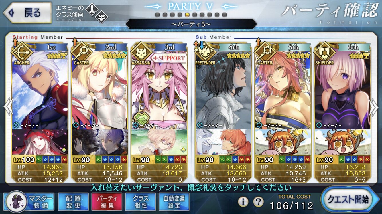 アーツアタッカー、キャストリア、キャストリア、オーダチェンジジャンヌ ジャンヌ宝具→アタッカー宝具→アタッカーアーツ 令呪→ジャンヌNP→ジャンヌ宝具→適当にアーツ→アタッカー宝具の繰り返しで4ターンまでは持つはず。>>81