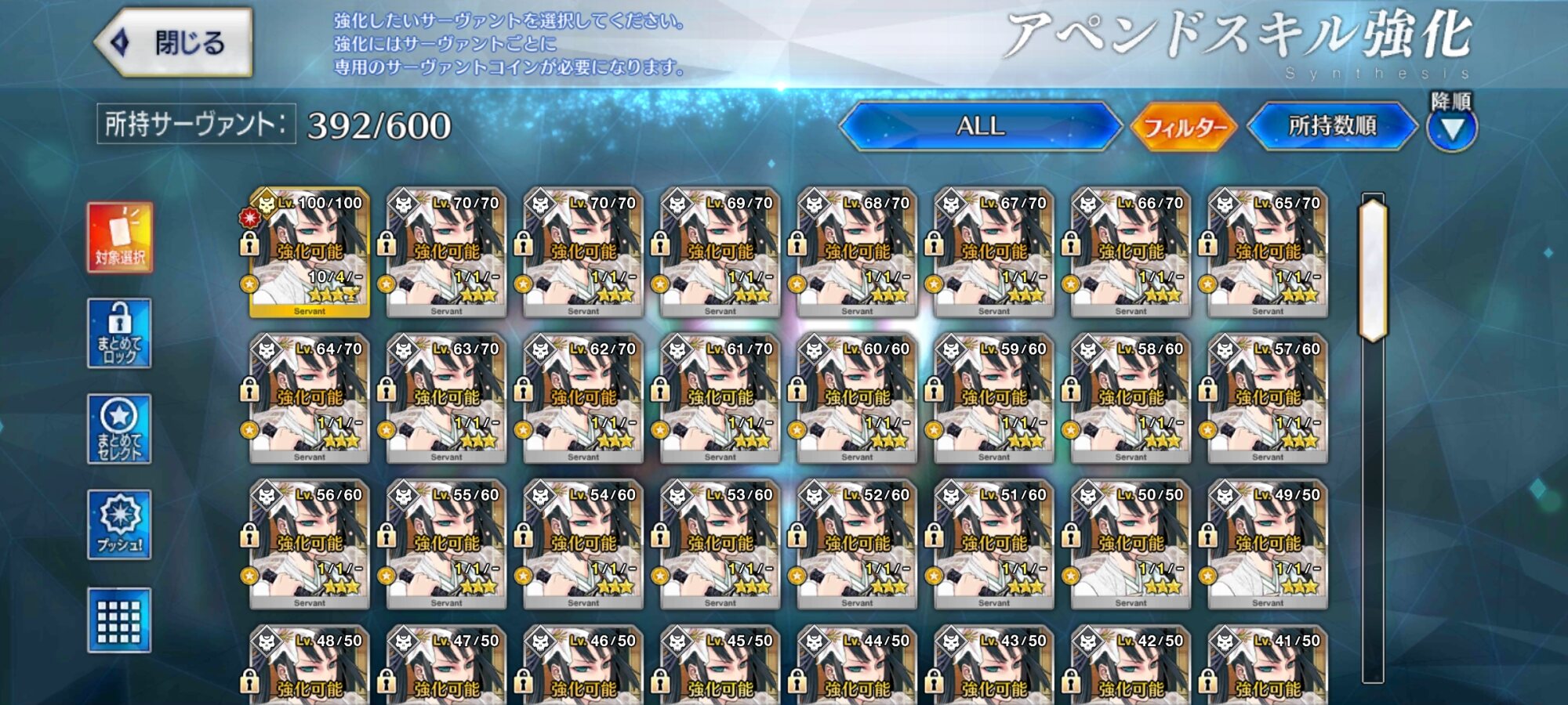 2臨以上にしてる荊軻さんがちょうどさっきの画像で全員だったので32人×再臨で使う骨15で480本ついでにスキルマが二人なのでプラス180本で全部で660本凶骨使用しましたね、思った程ではなくて良かったです。>>898