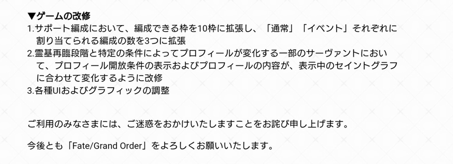 雑談から相談、報告や攻略、盛り上がりたい話題などお気軽に。リーク・解析情報等は禁止です。荒らし・誹謗中傷等は無視し、報告・NGにて対応してください。二次創作画像は転載可能な物に限り、その際必ず引用元を併記してください。R18関連話題、よくてよ無しのガチャ結果、実装から二週間以内のシナリオ及び開催期間中のイベント内容、進行度依存の報酬、最終再臨や霊衣解放の画像や話題は専用スレにてお願いします。