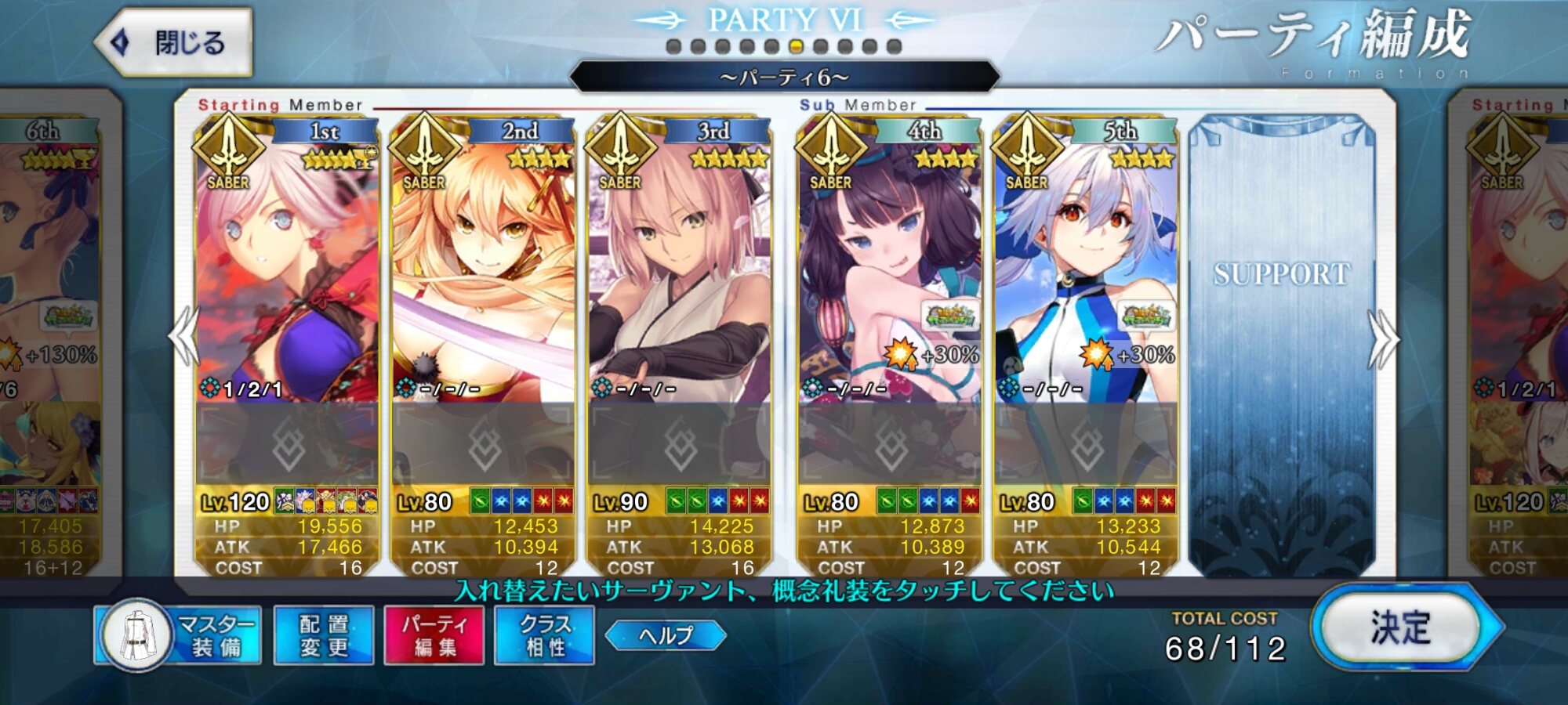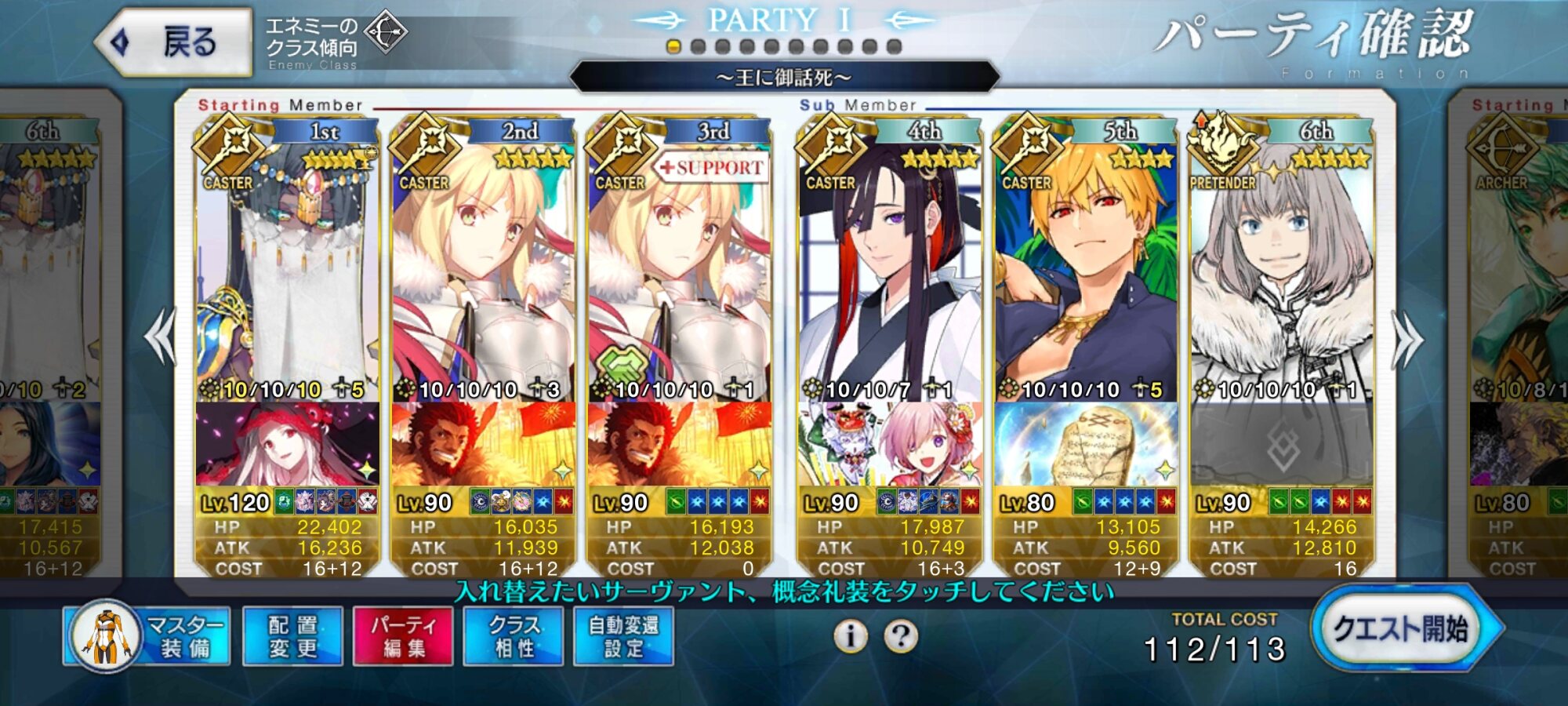 至るべき場所はクレーンさん運用の星出しと一ターン目にキャストリア達が宝具使用するためのNPチャージの二つを解決してくれる唯一の礼装だったからですね、編成はこんな感じです。>>864