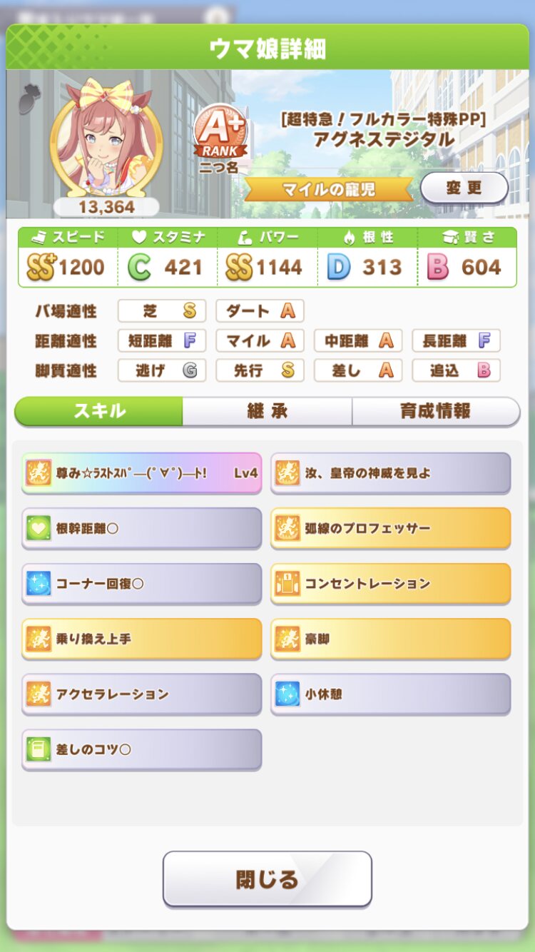題名と扉絵が見事に重なってるのマジで卑怯闘技場で、なんとなく作った会長固有もち星3B+ゴルシが1着取りすぎてヤバイ、毎回ドロップキックしてくる…、追い込みで大差勝ちって軽ーくうわぁってなったわ。そのゴルシ因子を引き継いだエイシンちゃんが中距離で暴れてるし…、1/2の確率で不沈艦ぶっぱしてるし。
