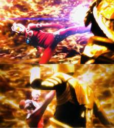 ザラガス君、ここで「やべえ、逃げなきゃ!」ってなってたら大変な目に遭うこともなかったのに…そういやトリガーの過去の姿であるトリガーダークと光に成る予兆のあるダーゴンは鎧に包まれた姿なのに対して、カルミラとヒュドラムは装甲を身に付けて無いんだよな・・・