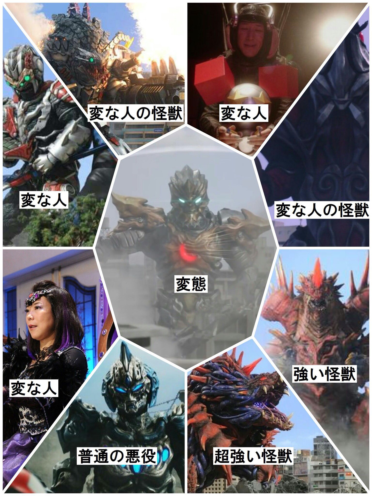 倒れてきたザラガスはダーゴンの引き立て役ではあるけど、あれは仲間のいる方向にザラガスを倒したトリガーが悪いのであってザラガスに非はないから噛ませとはちょっと違うかな。・ウルトラ戦士とは対となるしかめっ面の顔