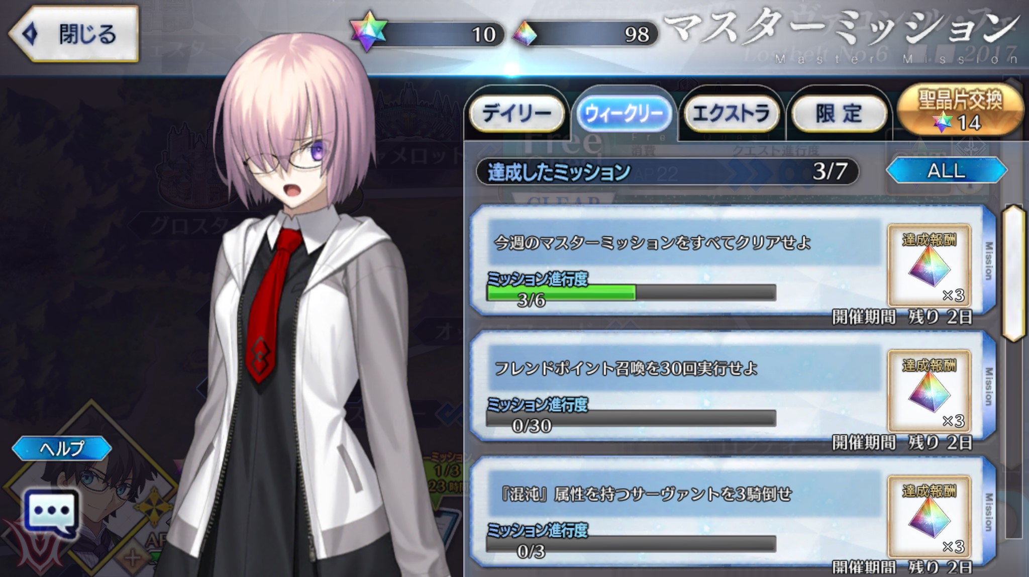 クエストやってれば2つは終わってるだろうし毎日無料分回すorフレポで回せばすぐ終わるし、あとは特定のサーヴァントを3回ほど倒していくだけだから余裕余裕>>19