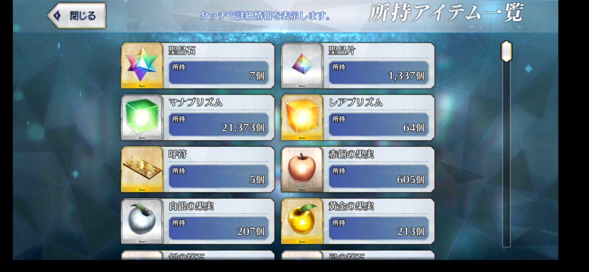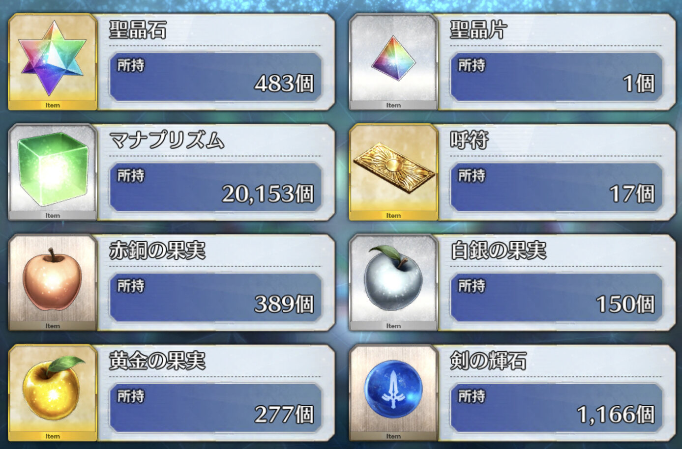 やはり虹リンゴは聖杯も結晶も枯渇する人がお世話になるのかな?攻略班とか動画周回勢の中には林檎持ってるのに見向きもせず虹林檎食う人が居て、見てると世界が違うって感じがする