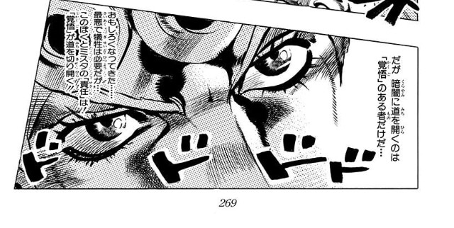 なんというかDIOのカリスマ性とダークサイドで生きやすい気性に、ジョースター家のタフさが相まって完全なハイブリッドと化してるのがジョルノのヤバさ
