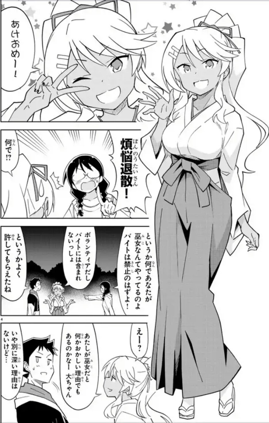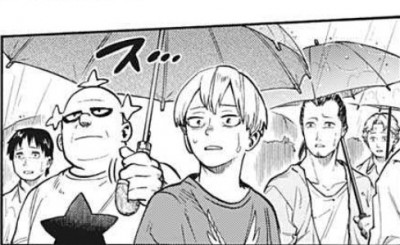 手前に(おそらく)夏休み満喫中のワルガキ3人(日常)。