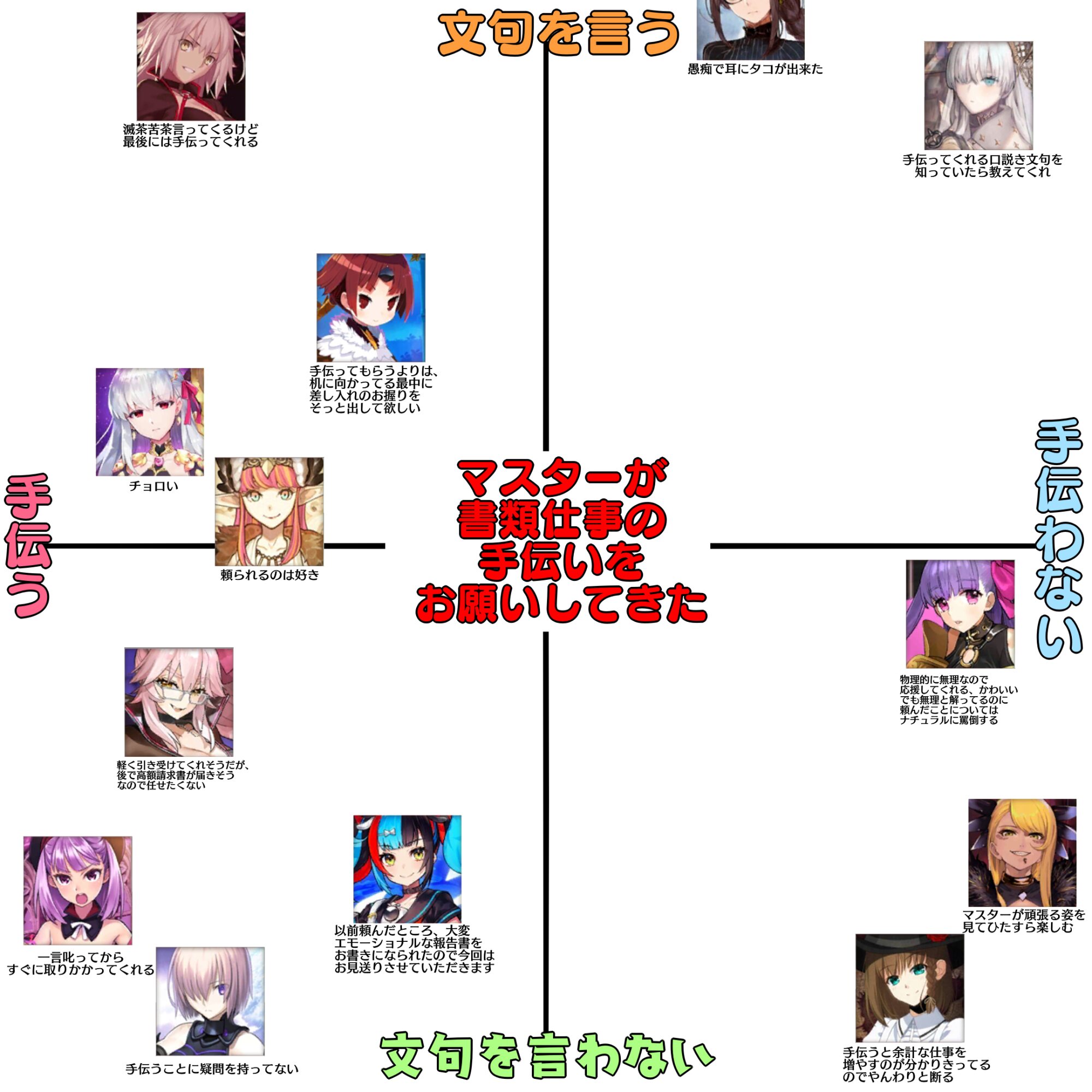 1文字たりとも書くことは手伝わないけど、カルデアのフォーマットならここを削ってあれを書いた方がいいとかここはそんな詳細に書かなくていいとかを横から言ってはくれそうなイメージがある