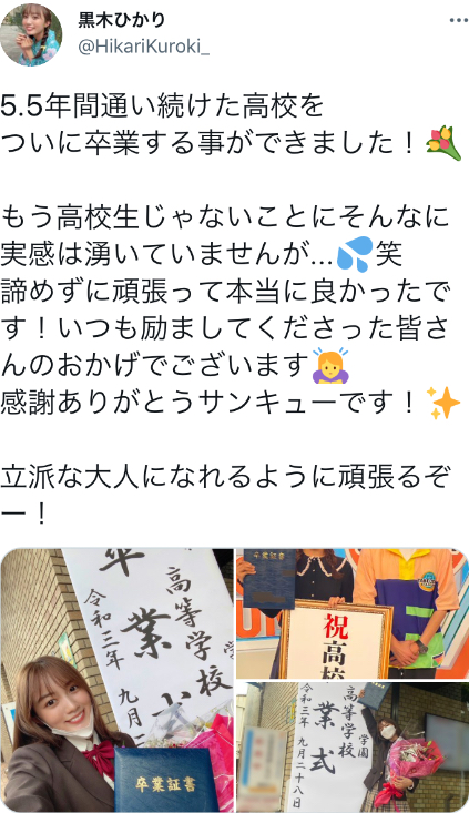 黒木ひかりさん、遂に高校を卒業できた模様