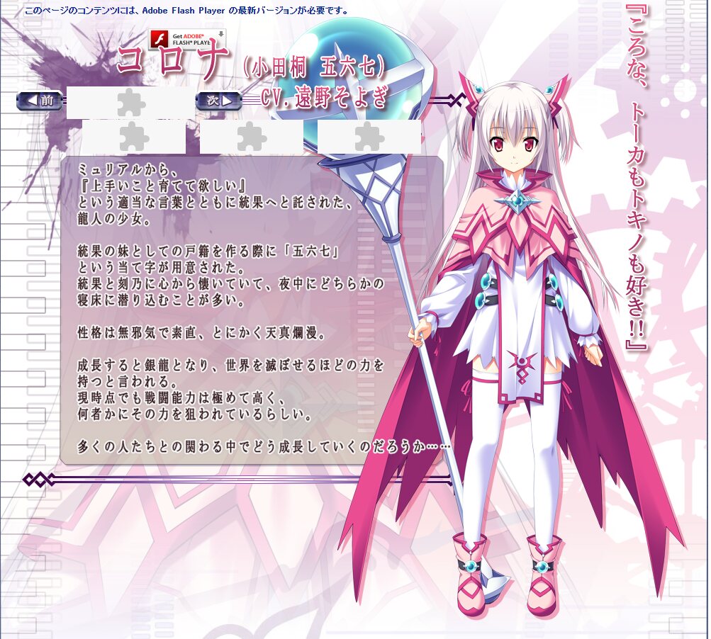 あとスクショ取るために公式サイトのキャラ紹介を見に行ったら色々Flashで作られてて時代を感じた……