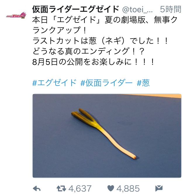 研修医は誰だろう……全てのバグスターの原典だし英雄の原典のギルガメッシュとか?エグゼイドの夏の劇場版がクランクアップしたみたいだけどラストカットの葱は一体何なんだよ。