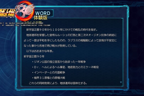 30体験版面白いっちゃ面白いんだがやはりbgmが主人公機以外固定なのがちょっとな