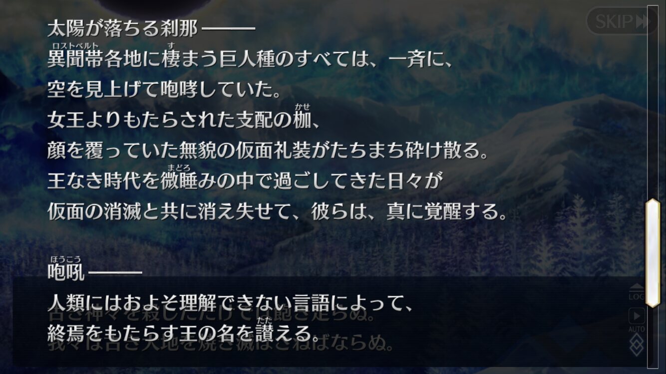 終局といえばぐれおの終着特異点の英霊集結シーンでは皆さんのサーヴァントの独想なんかがあって面白かったなぁ…
