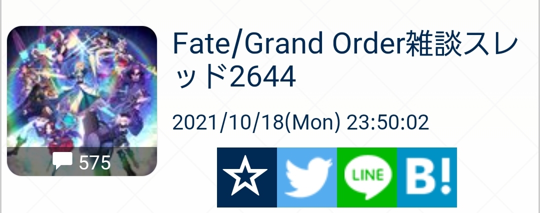 雑談から相談、報告や攻略、盛り上がりたい話題などお気軽に。リーク・解析情報等は禁止です。荒らし・誹謗中傷等は無視し、報告・NGにて対応してください。二次創作画像は転載可能な物に限り、その際必ず引用元を併記してください。R18関連話題、よくてよ無しのガチャ結果、実装から二週間以内のシナリオ及び開催期間中のイベント内容、進行度依存の報酬、最終再臨や霊衣解放の画像や話題は専用スレにてお願いします。