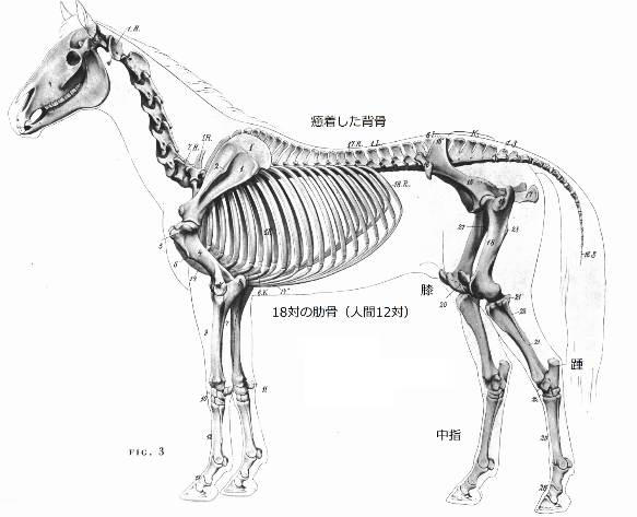 馬は背面を除き背骨に沿うように毛が生える