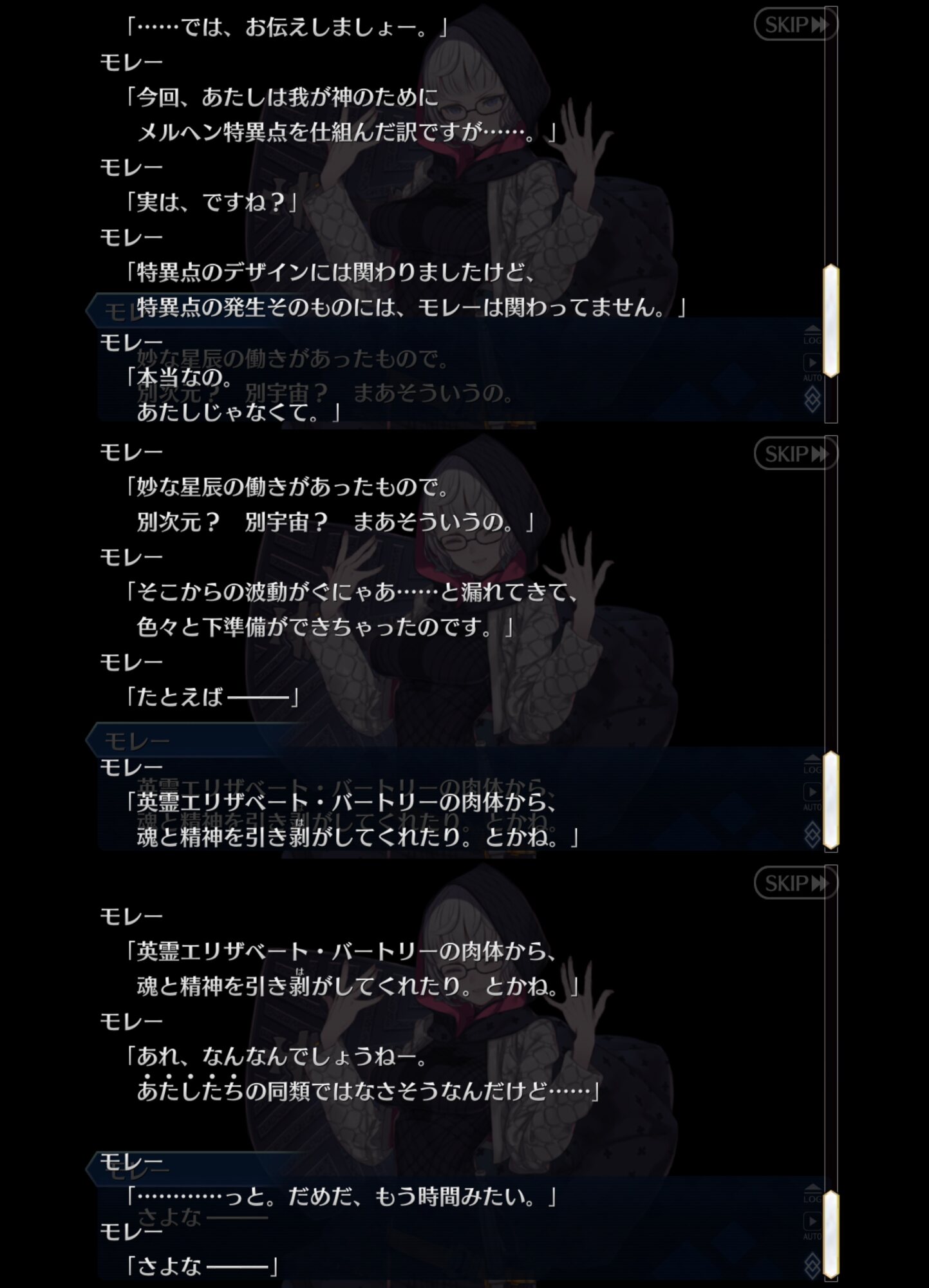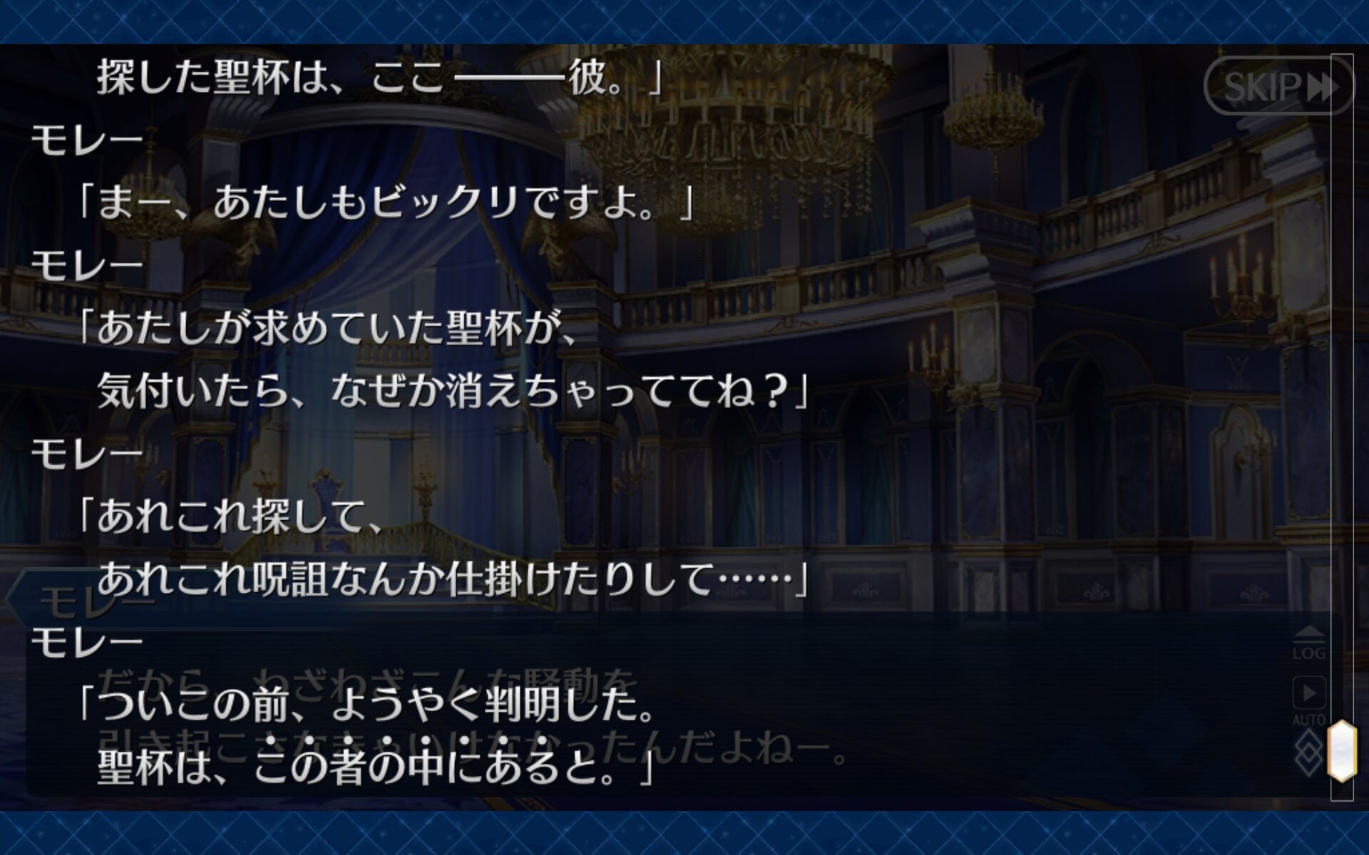 あと色々とマイルームで台詞を訊いているとモレーってナポレオン、サンソン、ジル、デオンとか色々なフランス鯖との台詞があって聴きごたえがあるよな。ナポレオンやジルとか台詞内容的にも歴史的なつながりを感じさせて、クオリティ高いキャラクターだなと脱帽した。>>15