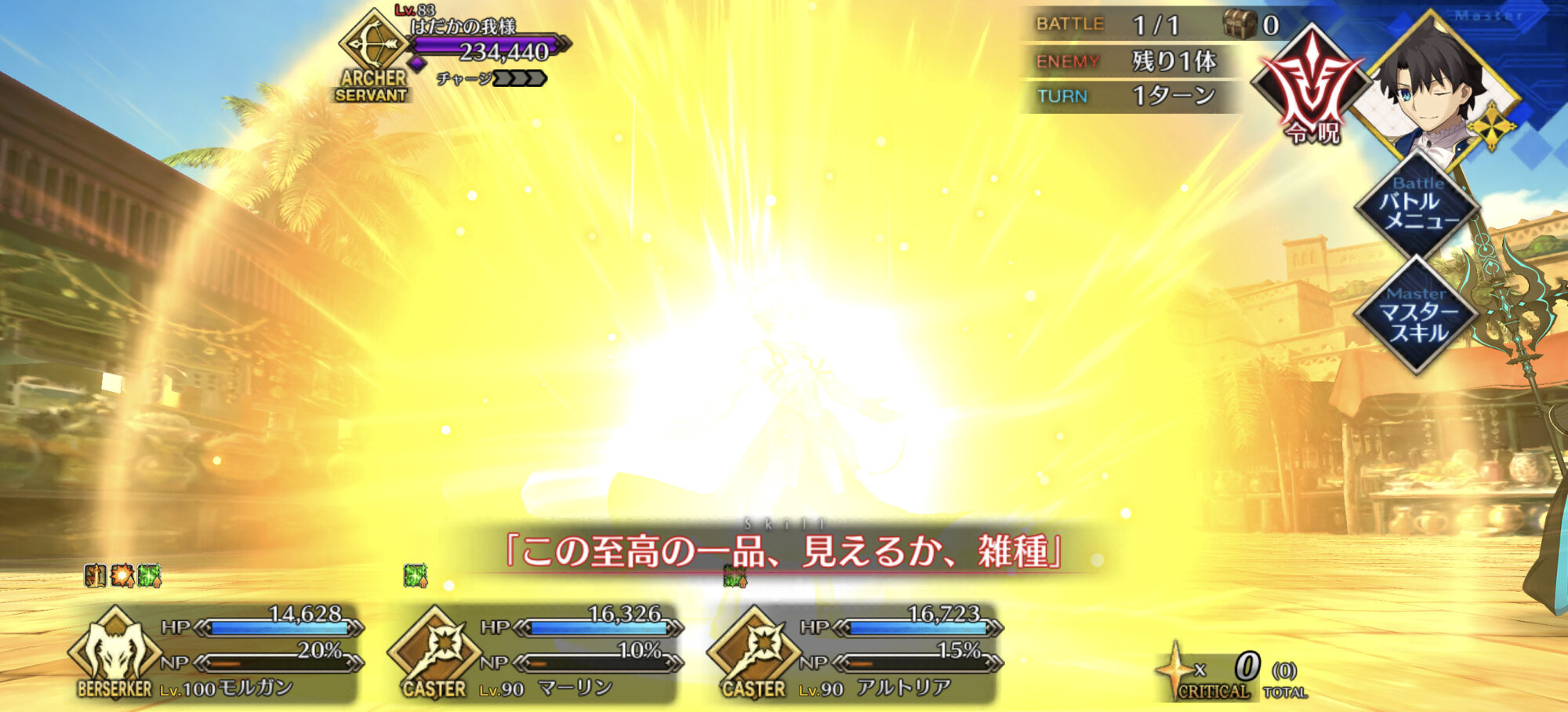ボスアタッカーとしての性能の高さとA宝具の時の宝具回転率の高さをマジマジと感じてしまった…