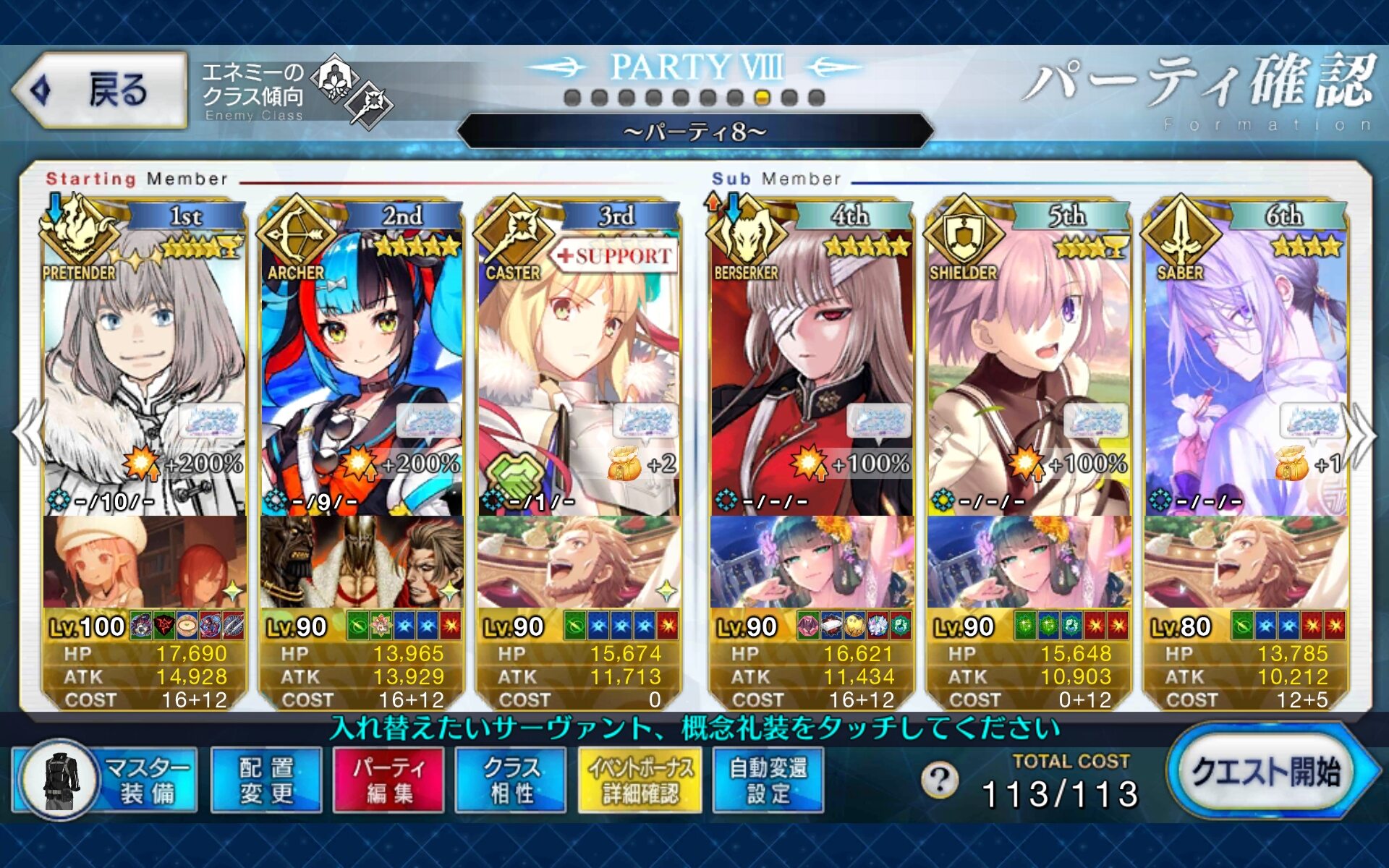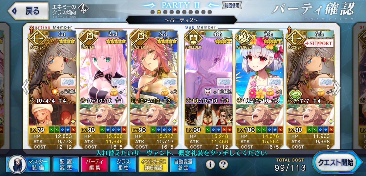 100超え前にまとめでスクショあったよ変則3つとも片ハベにゃん主軸で3ターン行けたから弊カルデアはハベにゃんが今回のMVS