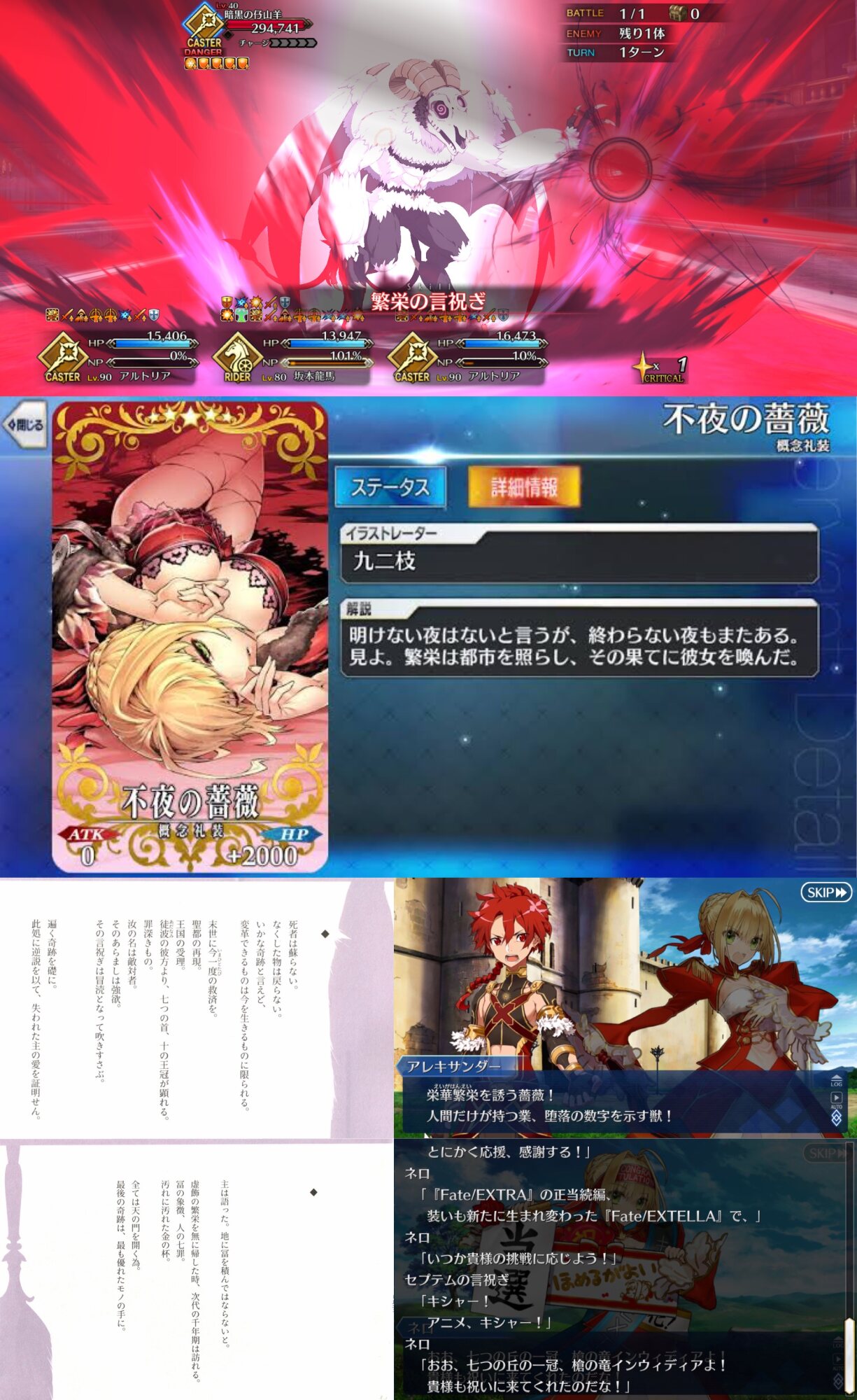 生前の自身の最期(一説)に納得いかずサーヴァントとなって抗い続けるゼノビアさんだからこその「自身が何者かを決めるのは自分」という言葉は良く響くな。あと王子様役がお爺さまだったのと、配役の理由がエリちゃんが特異点に召喚される直前に会ってたからなのは笑ってしまった。