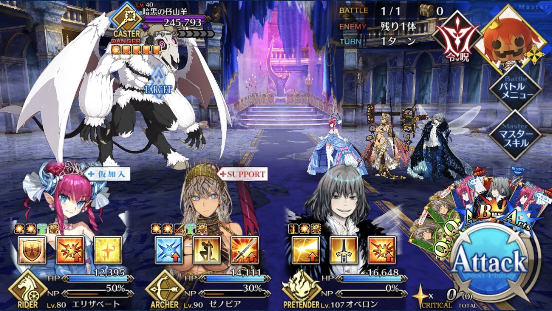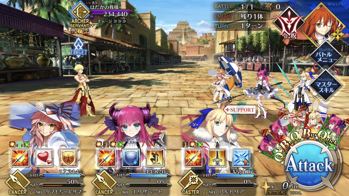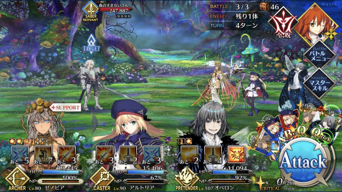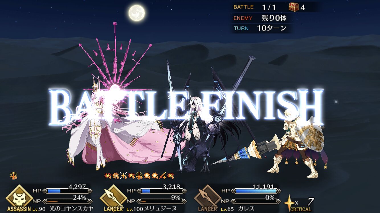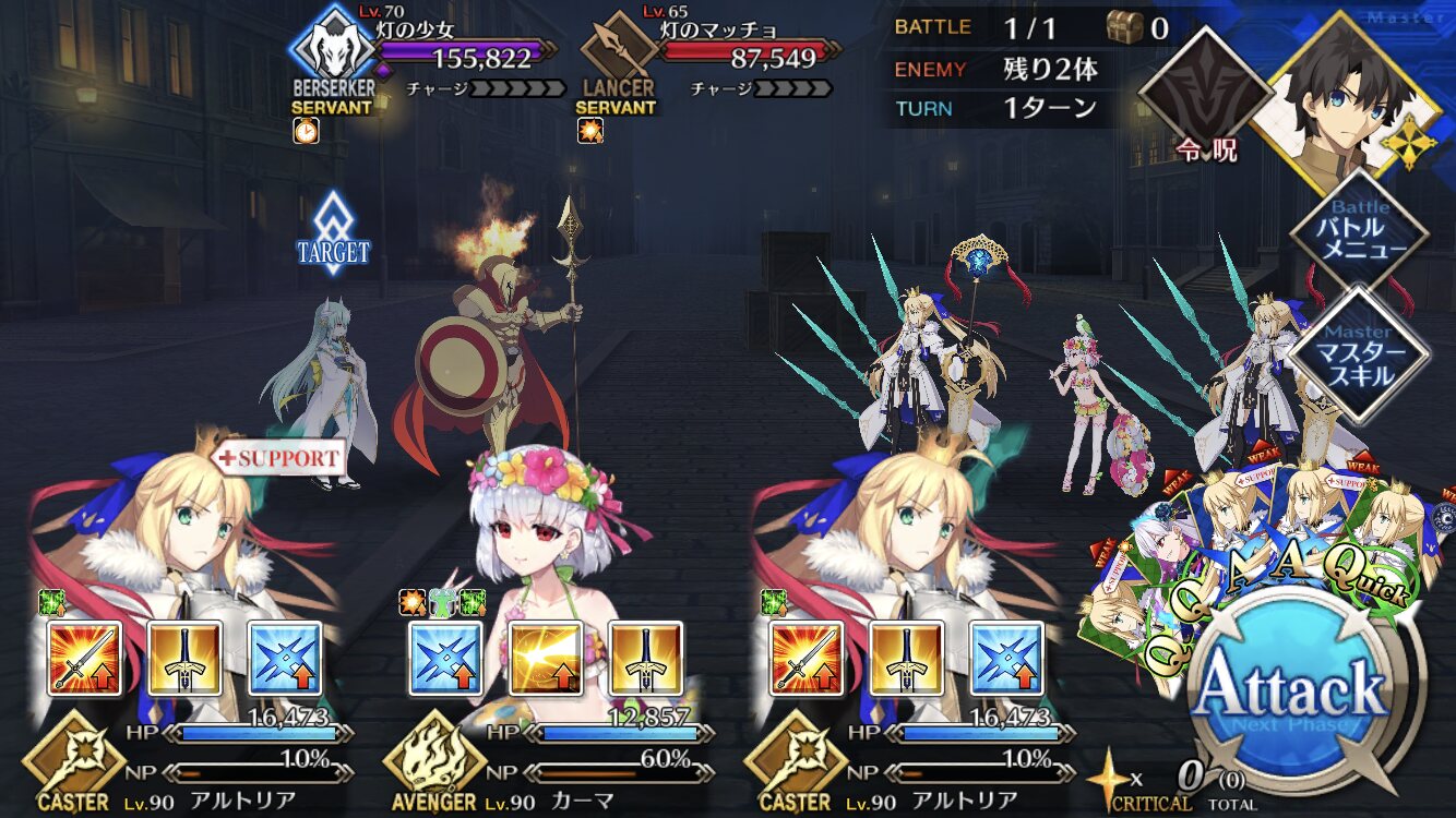今回敵が6体いる事でクイック宝具で6積み周回できるようになったね。これが本当Q済措置ってか。