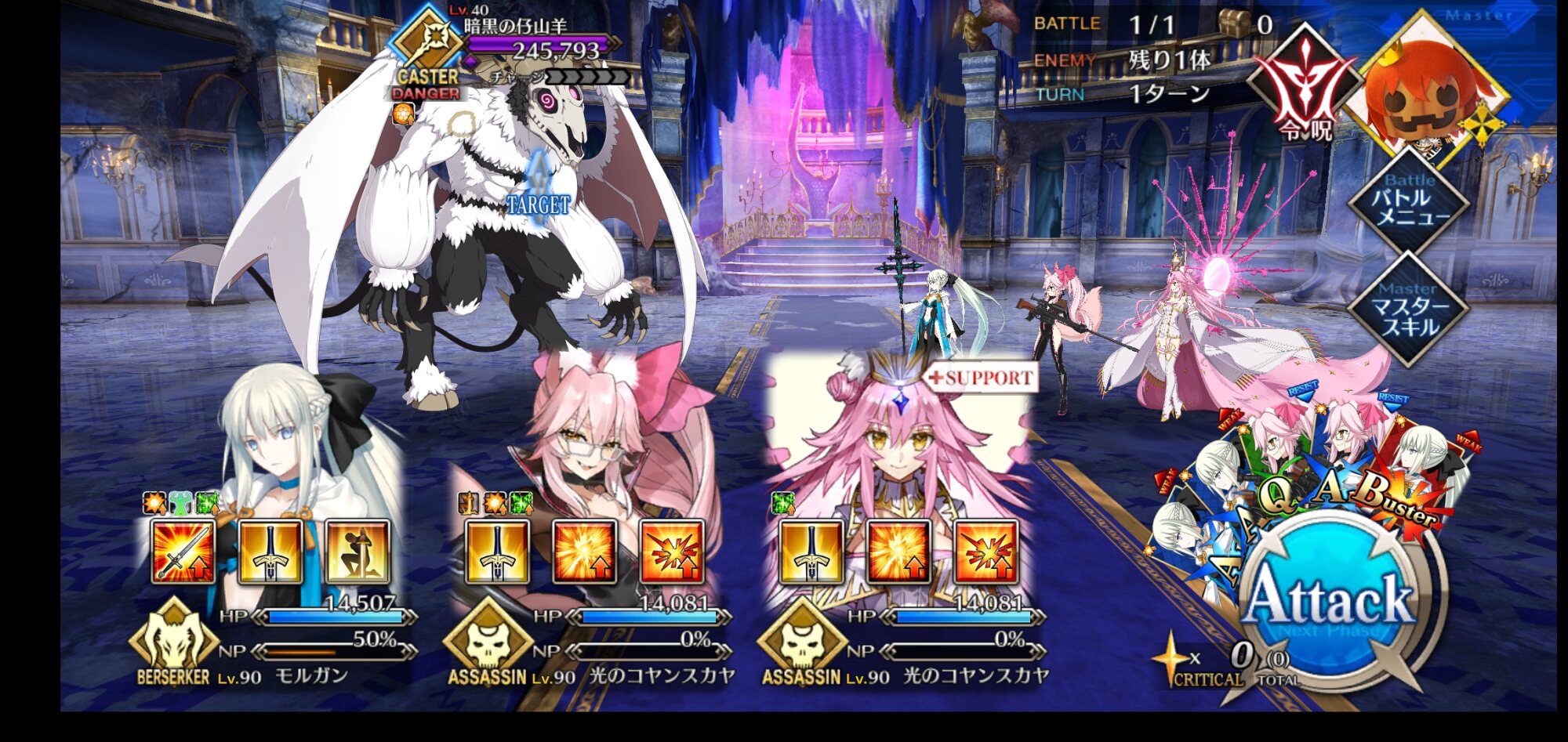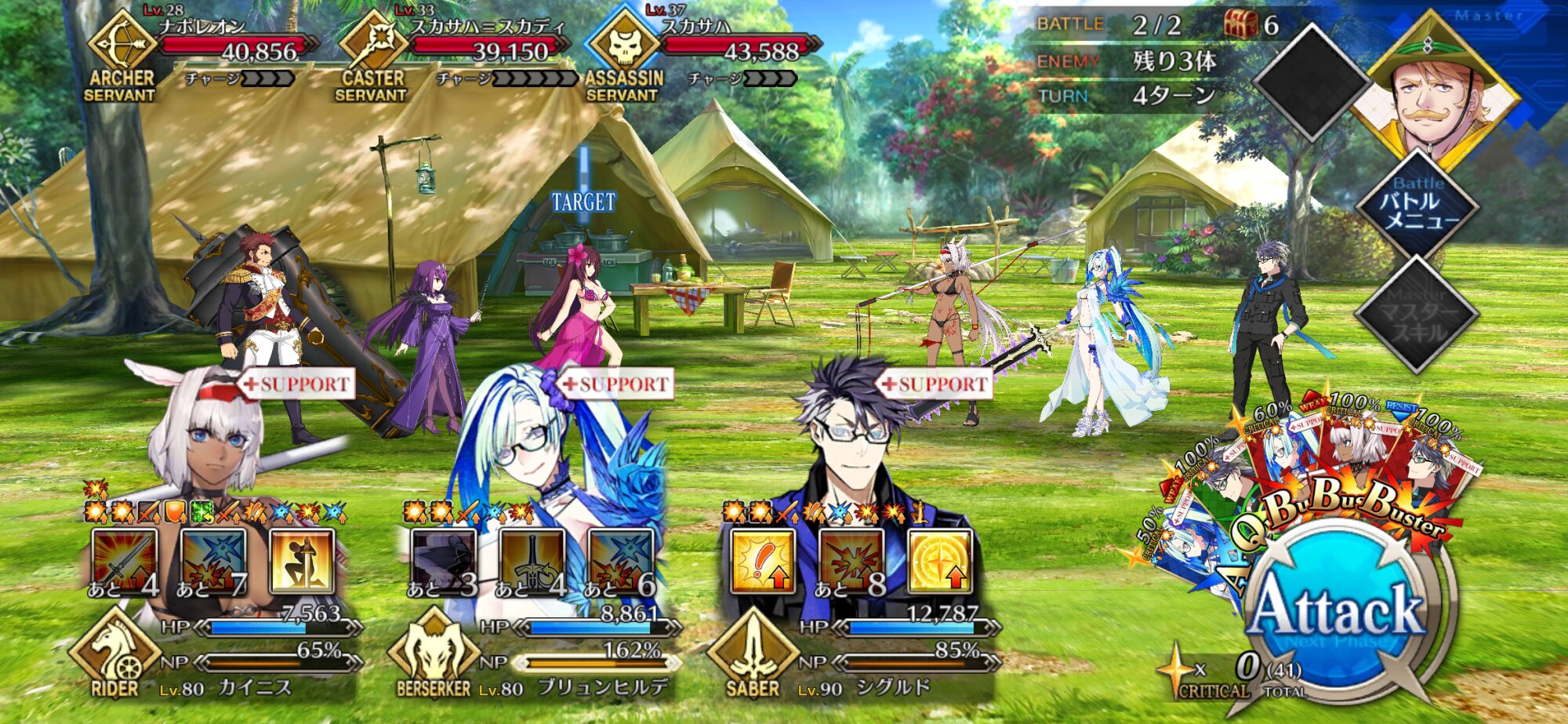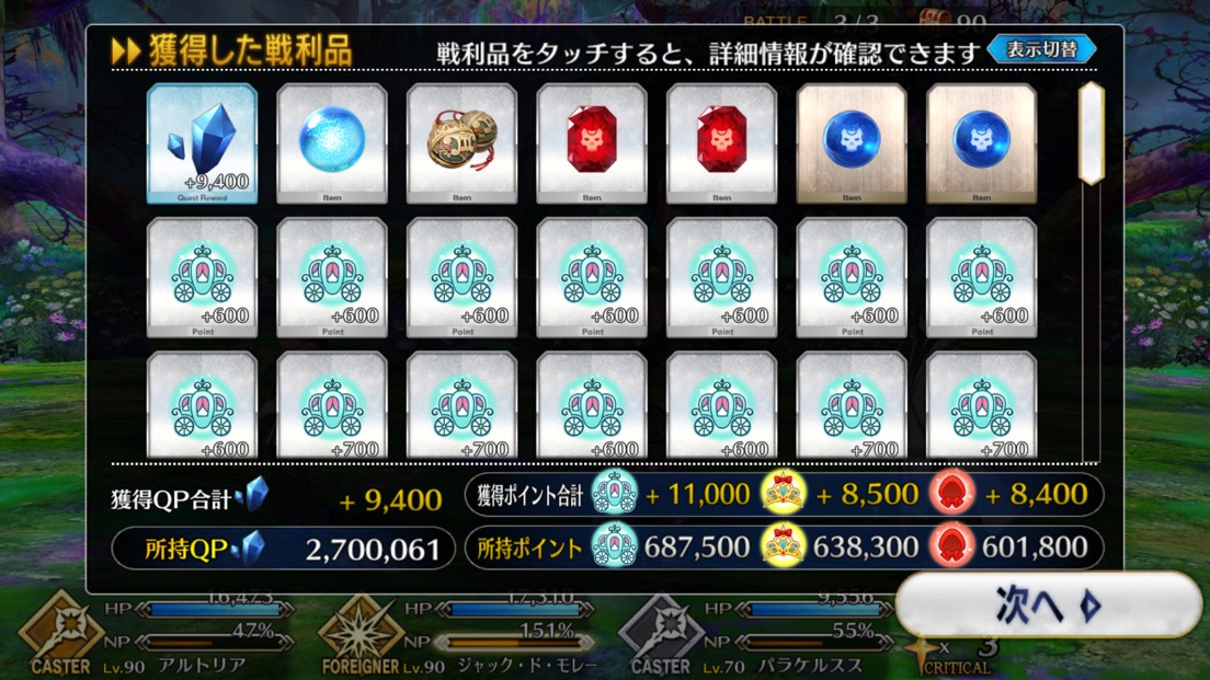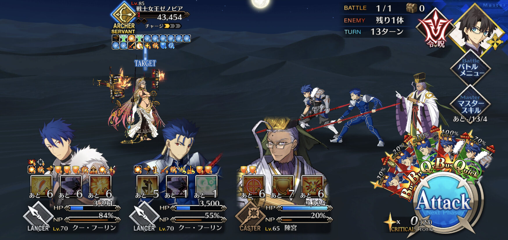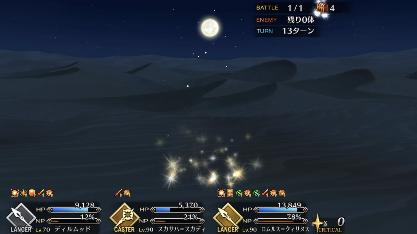 今回敵が6体いる事でクイック宝具で6積み周回できるようになったね。これが本当Q済措置ってか。