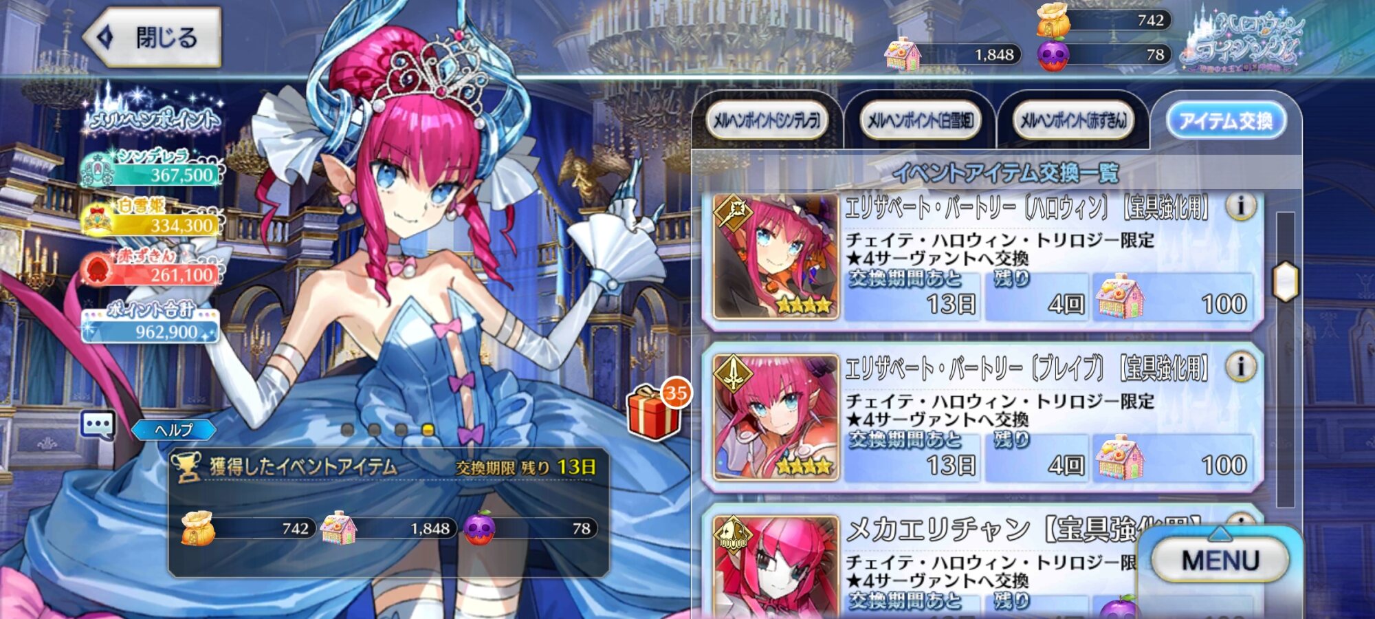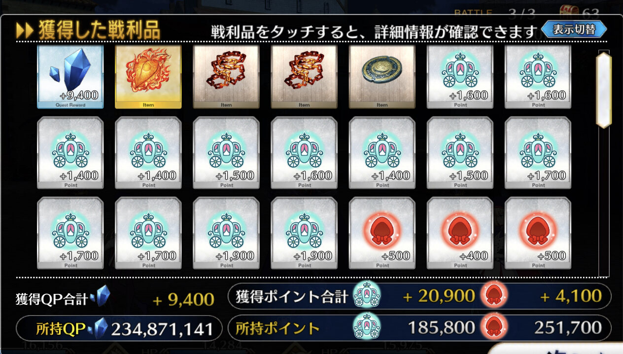 勲章欲しさにキャメロットに帰るか、ハロウィンに残るか悩んでるそういえば、今回交換とかポイント達成まであんまり時間差がなくて、そんなに走ったりした覚えないんだけど、自分の気のせいだったりする?