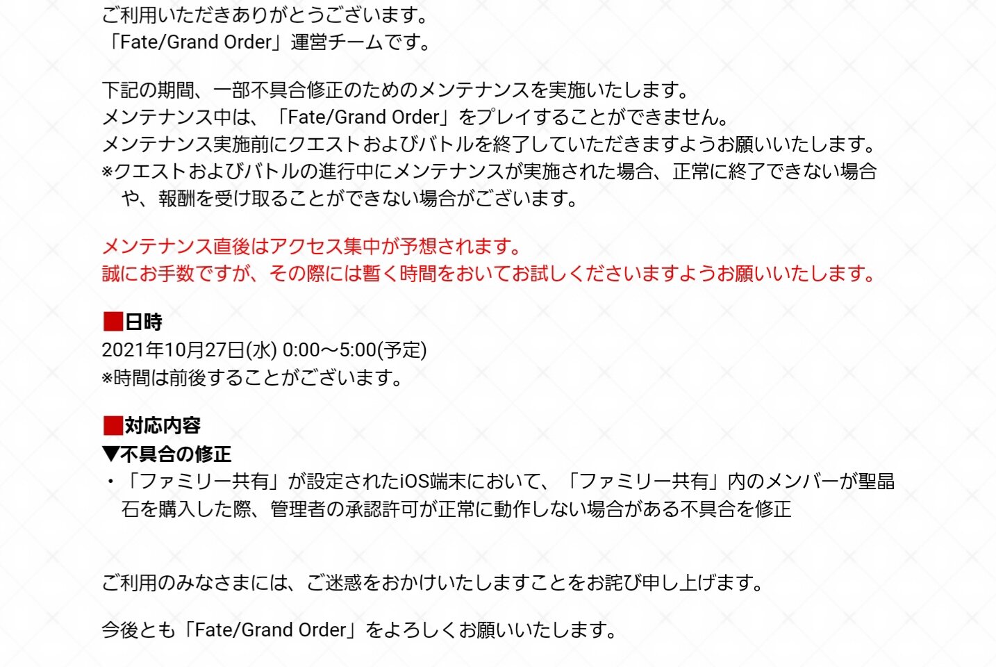雑談から相談、報告や攻略、盛り上がりたい話題などお気軽に。リーク・解析情報等は禁止です。荒らし・誹謗中傷等は無視し、報告・NGにて対応してください。二次創作画像は転載可能な物に限り、その際必ず引用元を併記してください。R18関連話題、よくてよ無しのガチャ結果、実装から二週間以内のシナリオ及び開催期間中のイベント内容、進行度依存の報酬、最終再臨や霊衣解放の画像や話題は専用スレにてお願いします。