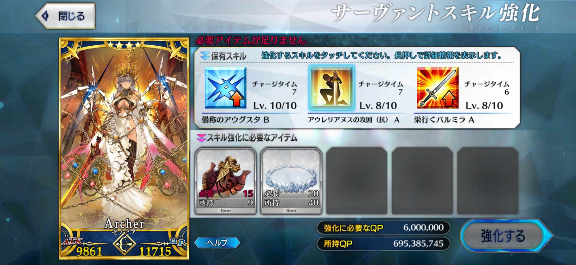 なに、次に頑張ればいいさ持ってるサーヴァントでlvが未育成なのは召喚してすぐのメンバーしかいないからなぁ…せいぜいνエリちゃんくらいか