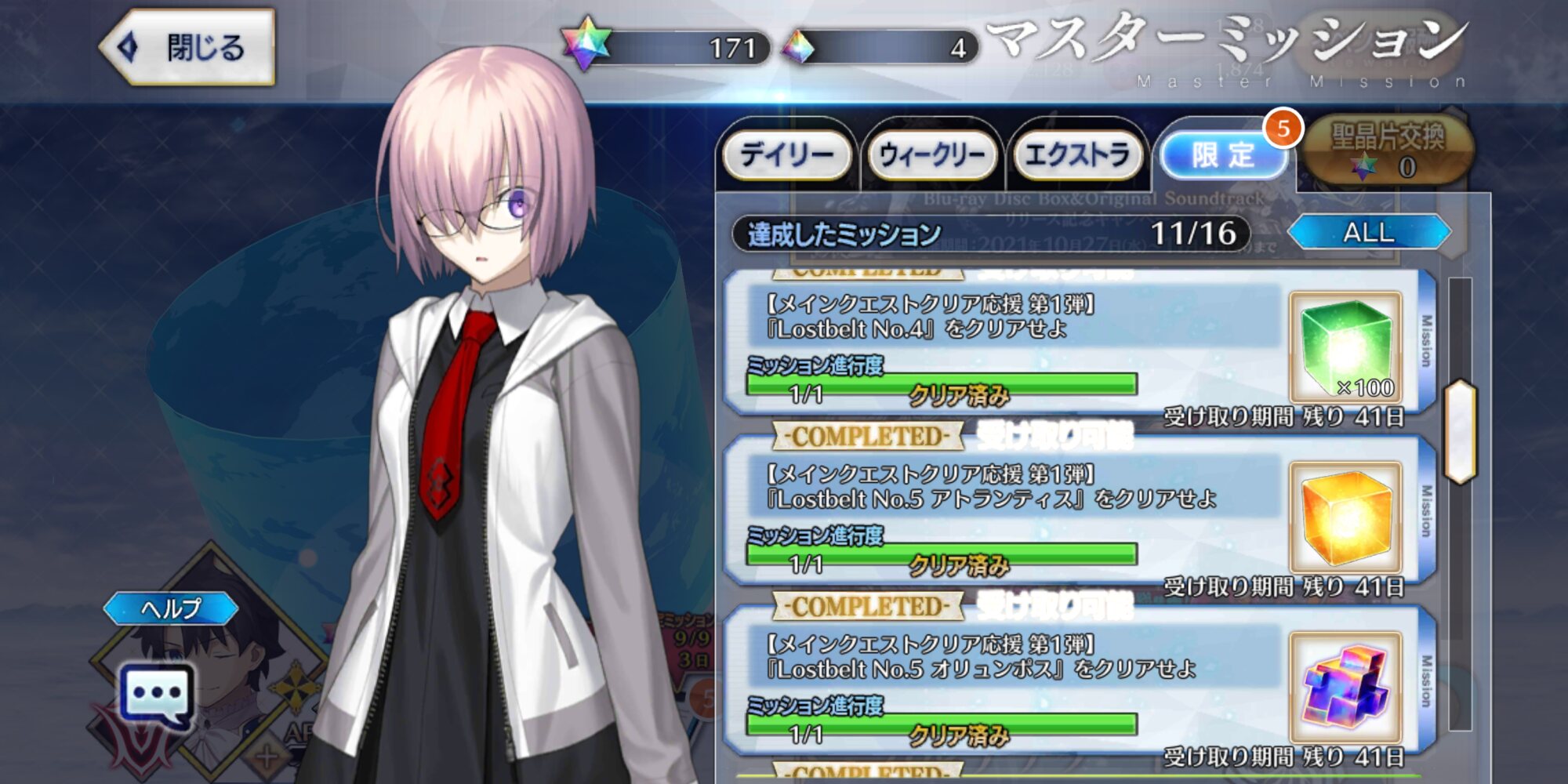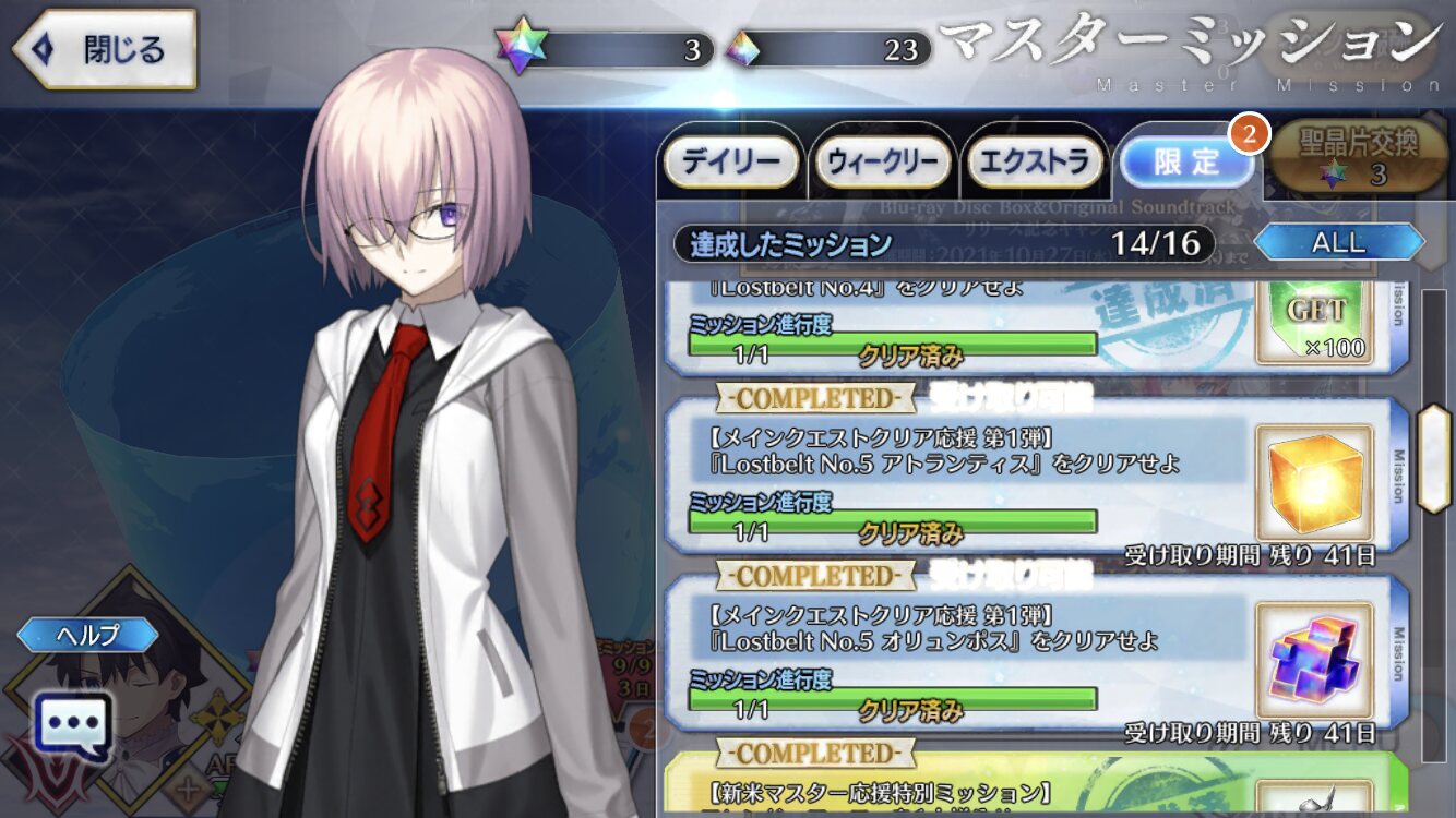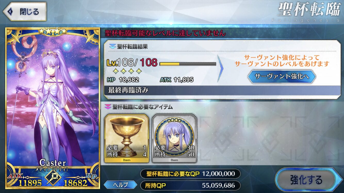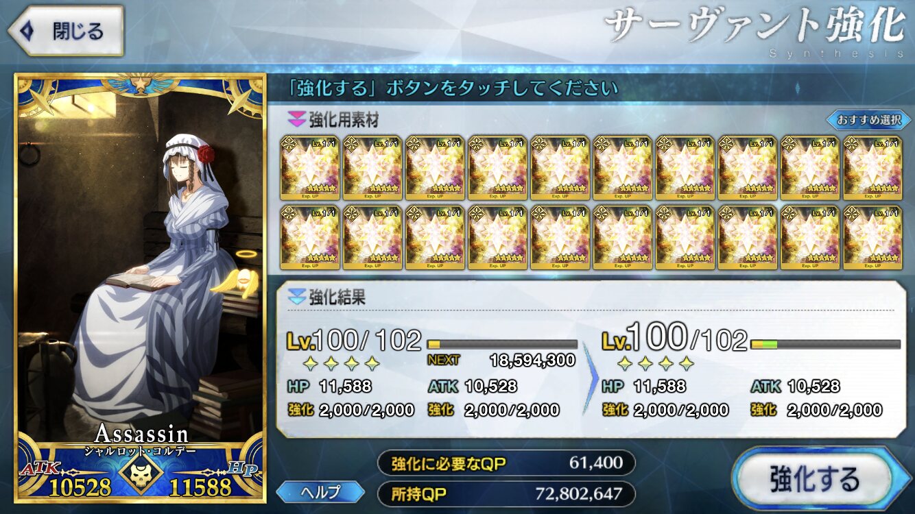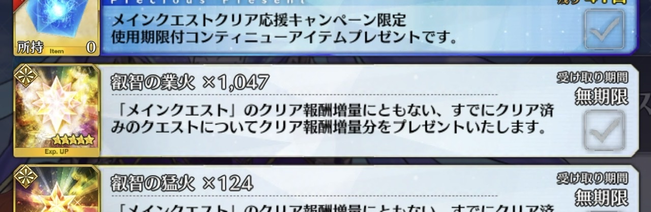 特別再臨キャストリアにしたけど、スキルも一緒に特別スキル上げみたいなので一気にスキル10になるようなのあったらもっと楽なのになあと副垢やりながら思った。>>909 クリアしたら石貰える系の限定ミッション追加とか、新年とかみたいな感じでQP配るとかそんなんじゃないかな?