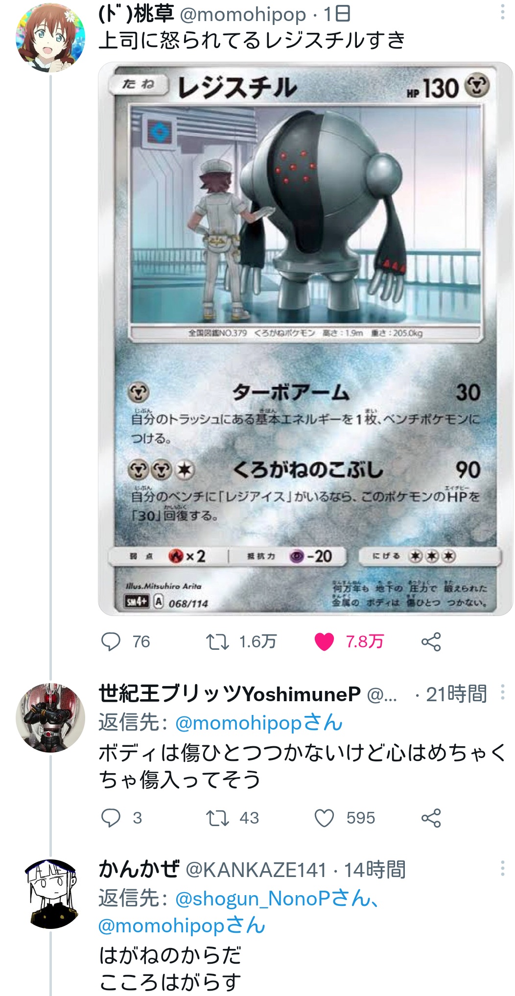 …スレ民らしい話題…狂気だな(逃走)(前スレのオベロンに色々食わせてた人だけど最後に話題に出たレジセウス作った人と同じとは思うまい)