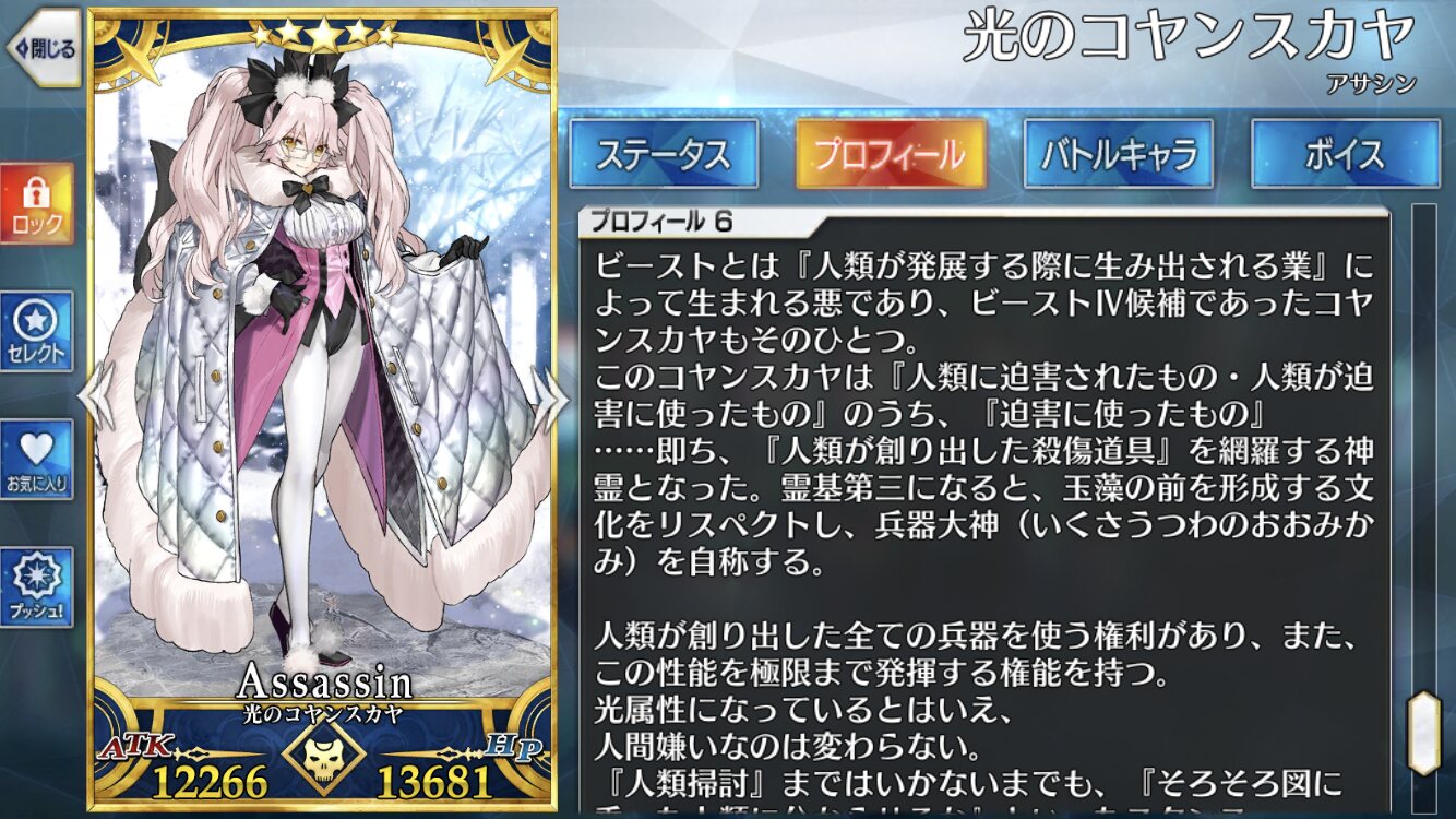カルナさんが指名しそうな女性鯖か...ジナコ?今年の配布は殺、降、裁、エリちゃんズ、例外で騎ですか。