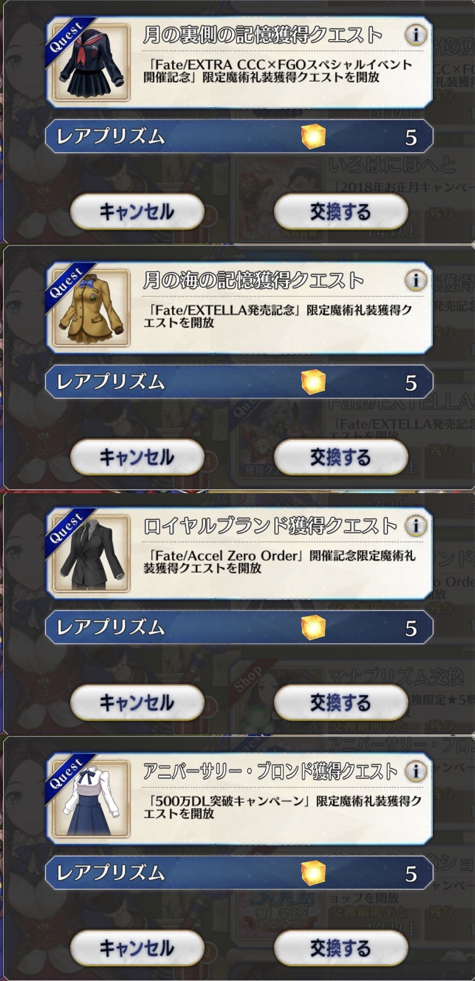 みんながみんな以下同文マスター礼装といえば、トリ子がダサいって言ってたマスター礼装ってどれだろ・・・やっぱ戦闘服あたりだろうか・・・アニバーサリーとかロイヤルブランドとかは普通の服だもんなぁ