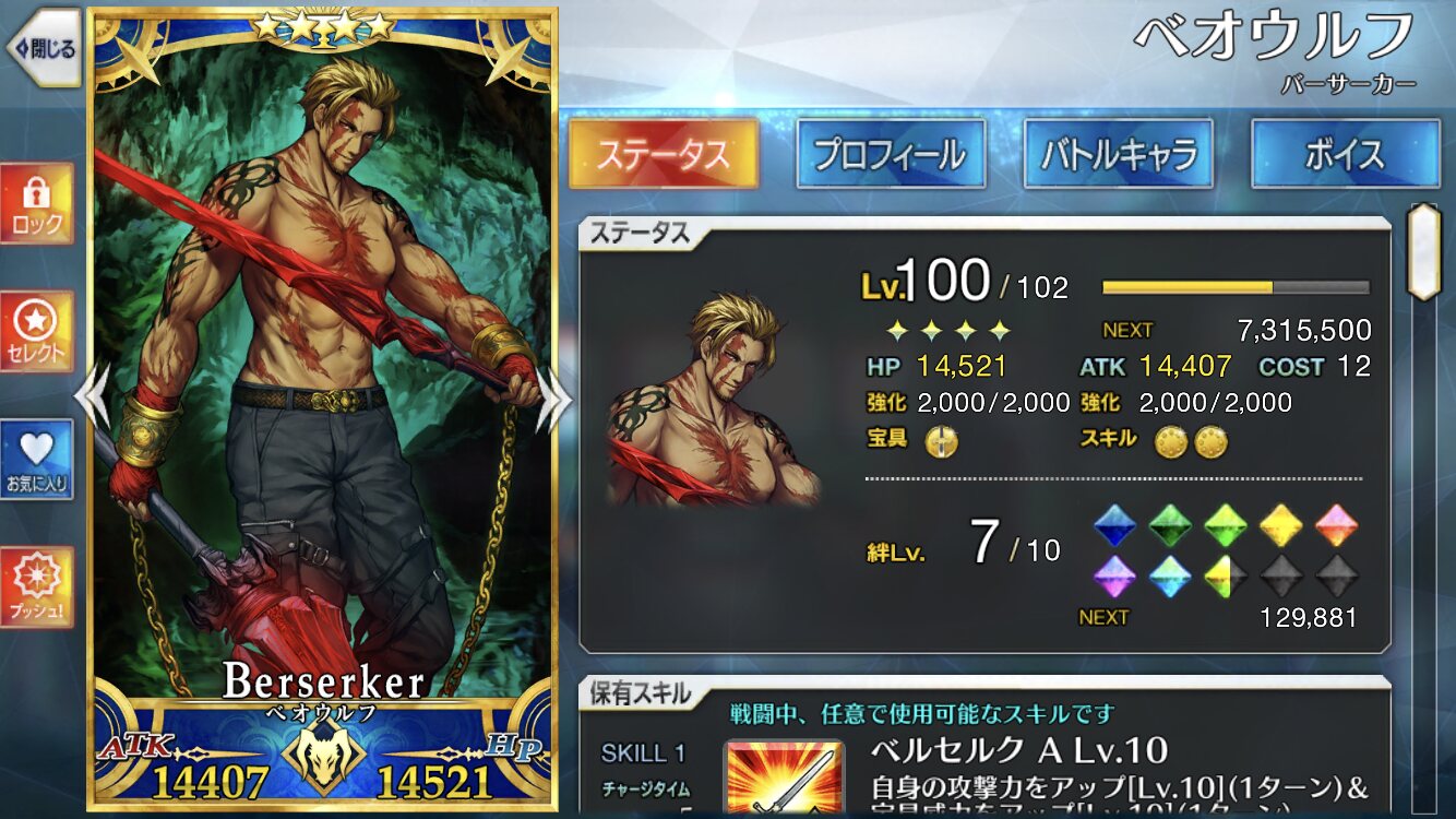 第一スキルを使うと3ターンの間BQの火力が1.56倍になるとかいうぶっこわれ、第二にスター集中とクリバフ、第三にNP獲得量アップというクリティカル性能も頼もしい