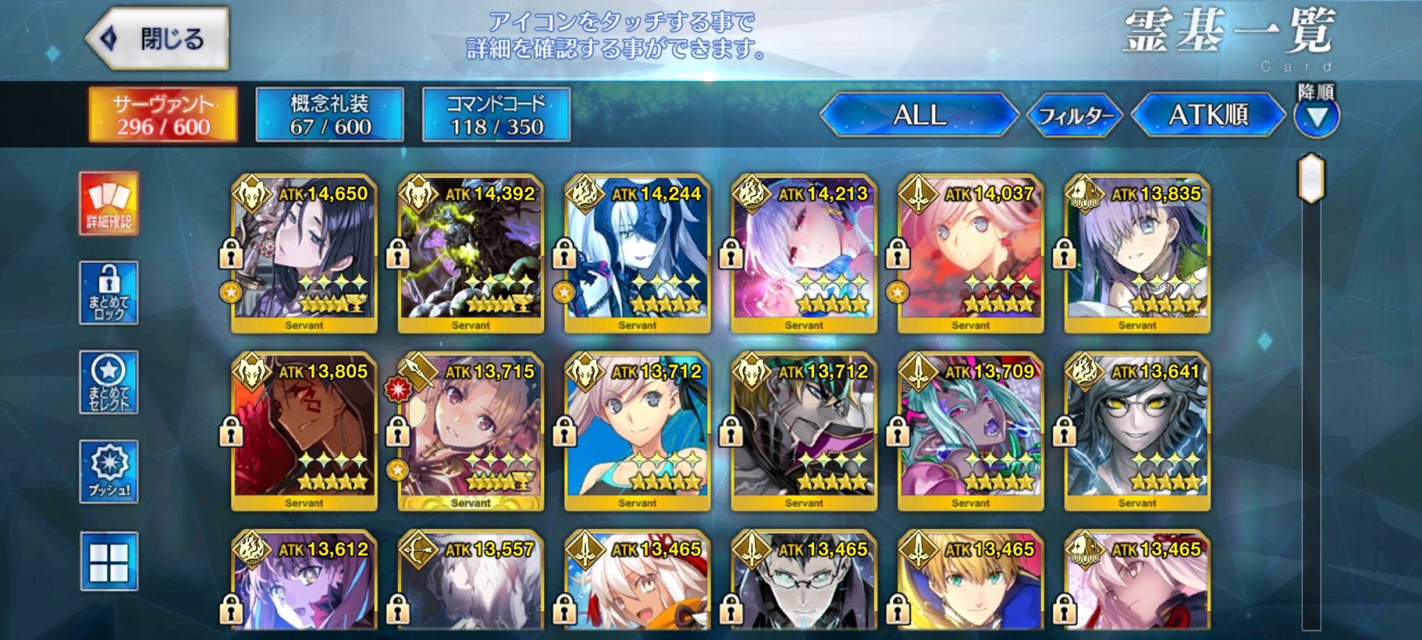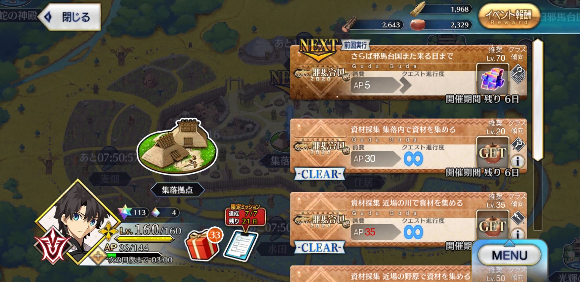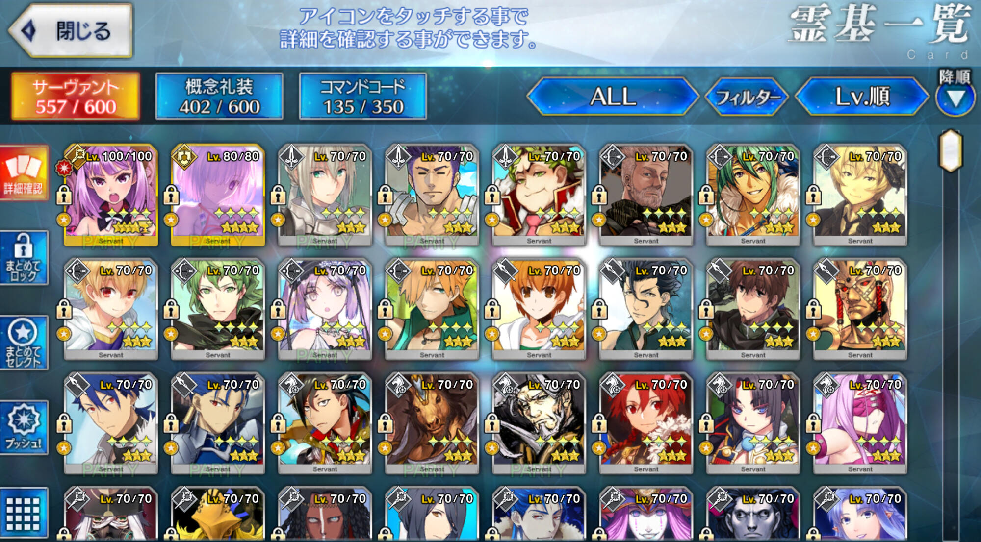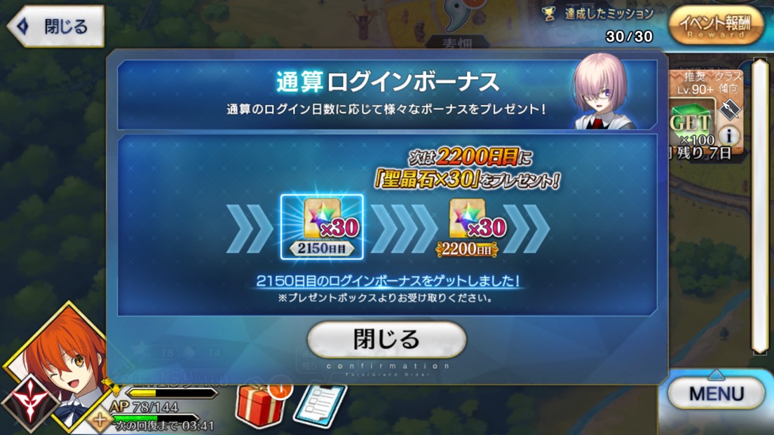 強化大成功・極大成功率アップと種火クエスト全種類解放来てるから、サーヴァントコインに余裕があるならレベル120目指してもいいかもね。