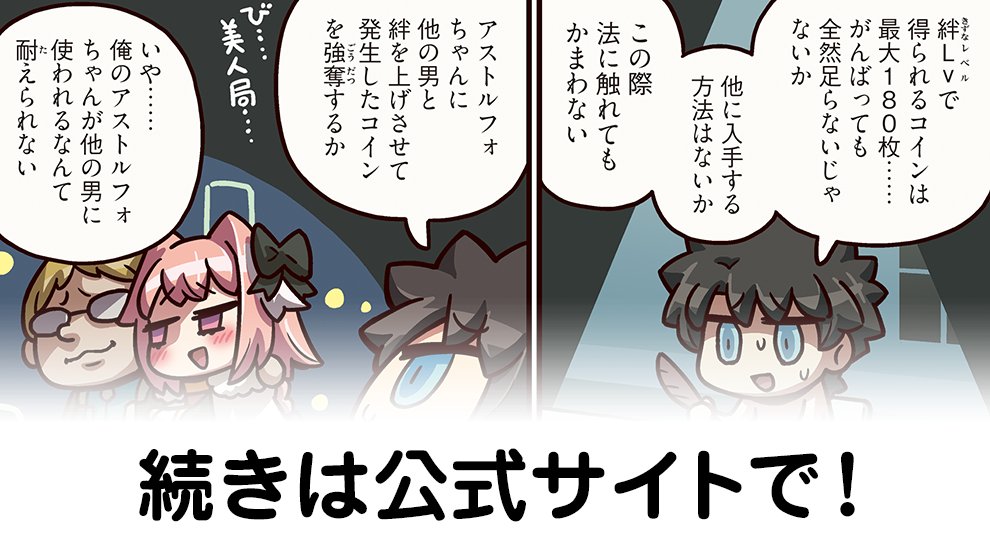 雑談から相談、報告や攻略、盛り上がりたい話題などお気軽に。リーク・解析情報等は禁止です。荒らし・誹謗中傷等は無視し、報告・NGにて対応してください。二次創作画像は転載可能な物に限り、その際必ず引用元を併記してください。R18関連話題、よくてよ無しのガチャ結果、実装から二週間以内のシナリオ及び開催期間中のイベント内容、進行度依存の報酬、最終再臨や霊衣解放の画像や話題は専用スレにてお願いします。