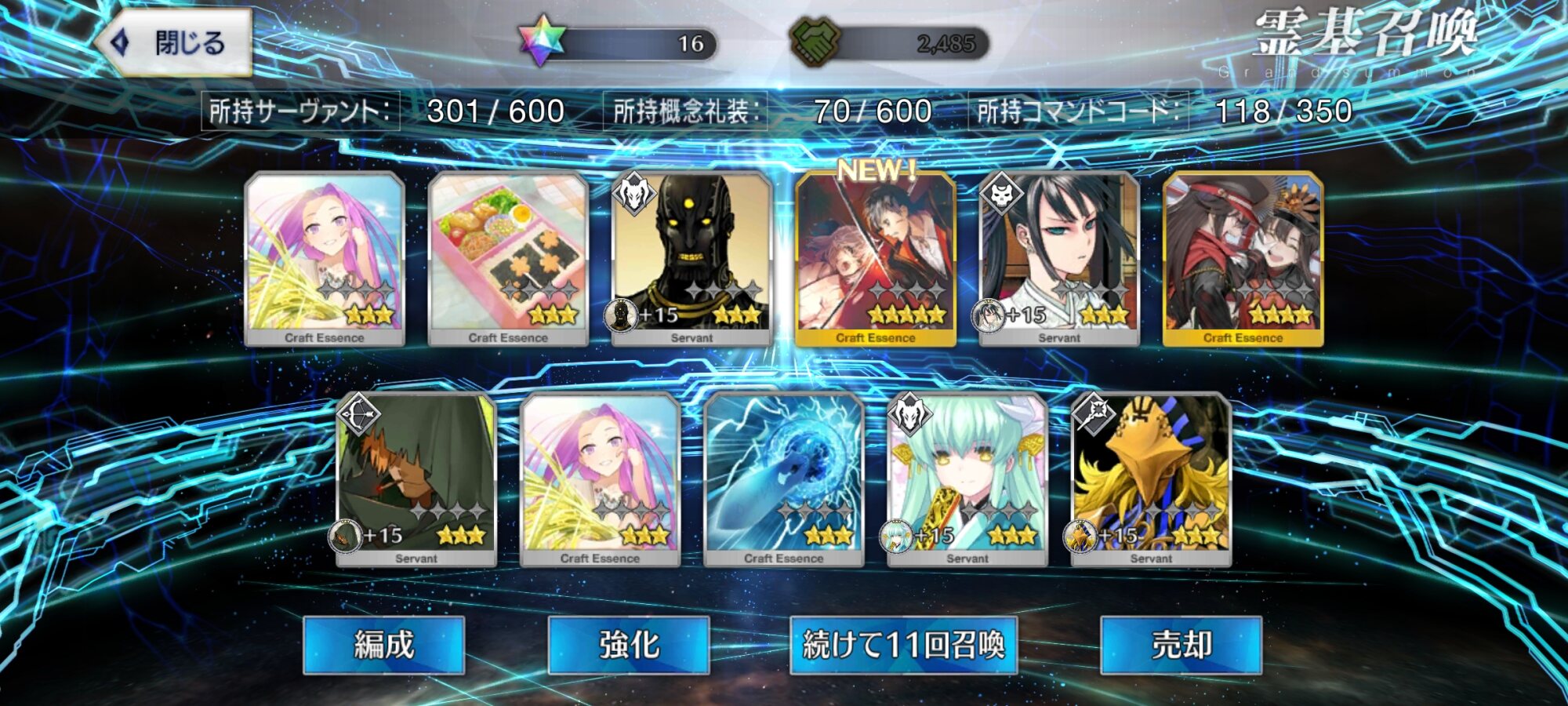 (90万フレポの弊カルデアは1セイバーリリィ、4ハベにゃん、1アンリとなります。ぶっちゃけ回すだけ回しても出ない時は出ませんが出る時は出ます。根気強く回しましょう。また、もうイベントは絆が礼装に戻しても十分かと【ただし、ソートかけてると出ないけど】。フレポを少しでも稼ぎたいならサポ欄を見てみましょう。それと、2400万ダウンロードで修練場が全日分開放されてます。術のクッキーなんか欲しい人は周り忘れないように、ように)>>935