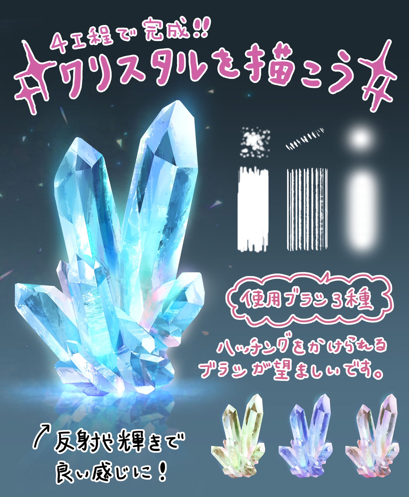 だからインフィニティの防御力が全く役に立たないという…丁度よく結晶の描き方講座が流れてきた