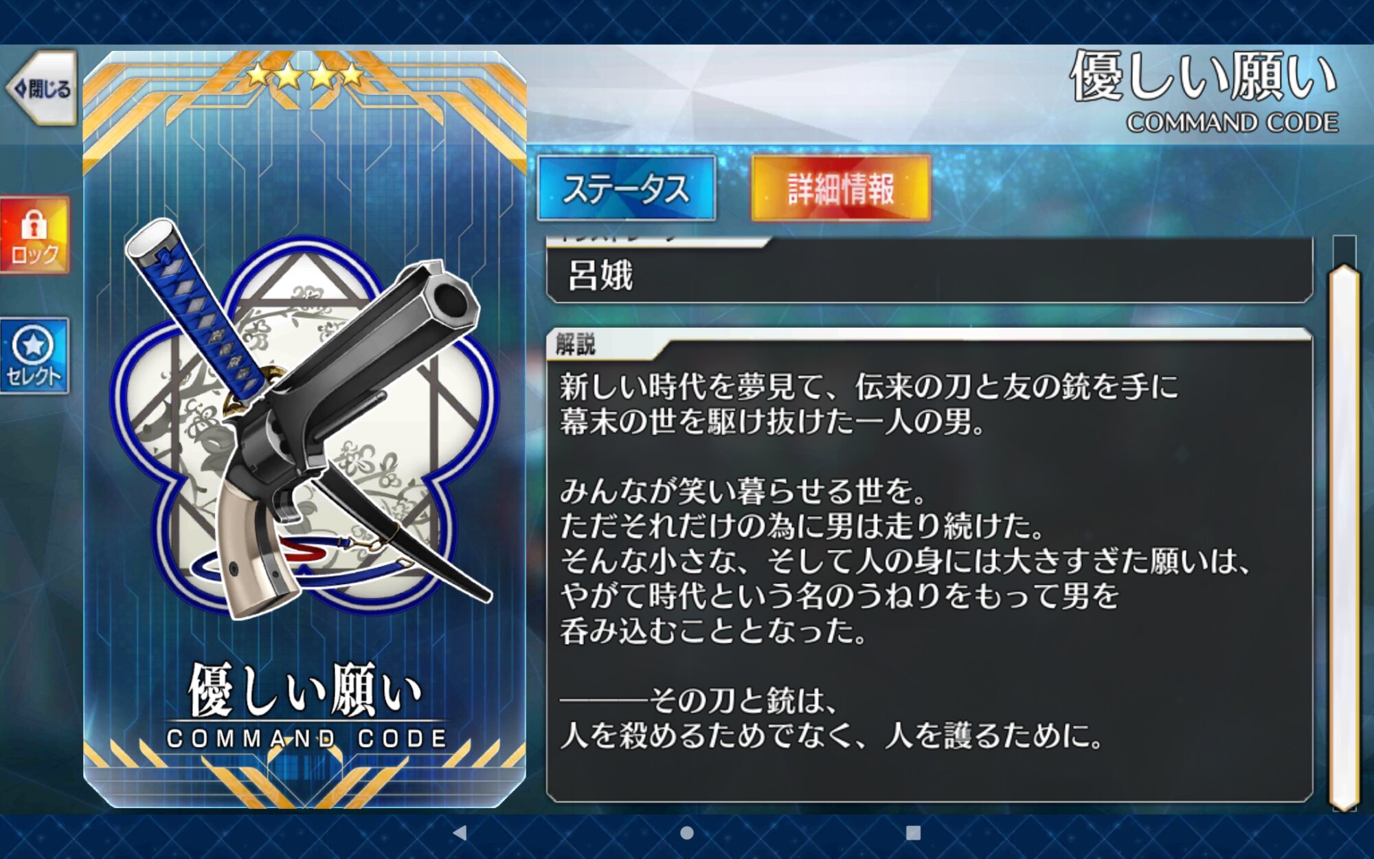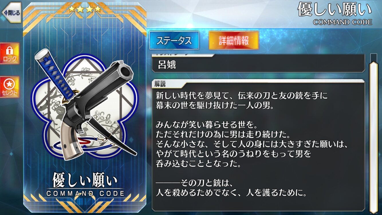 個人的に、最も惚れた剣術なれば…(男の浪漫)そういえば、今回のガチャ礼装である「失意燃ゆ」ってなかなかいい性能だな