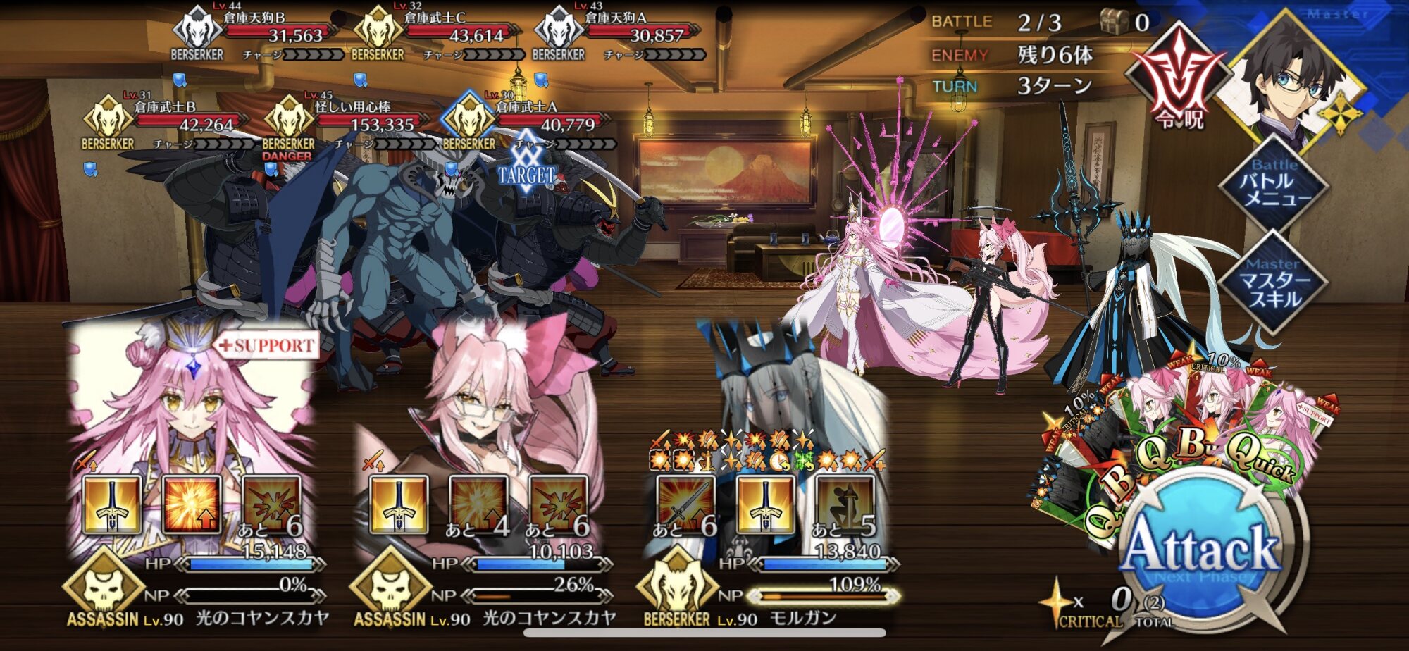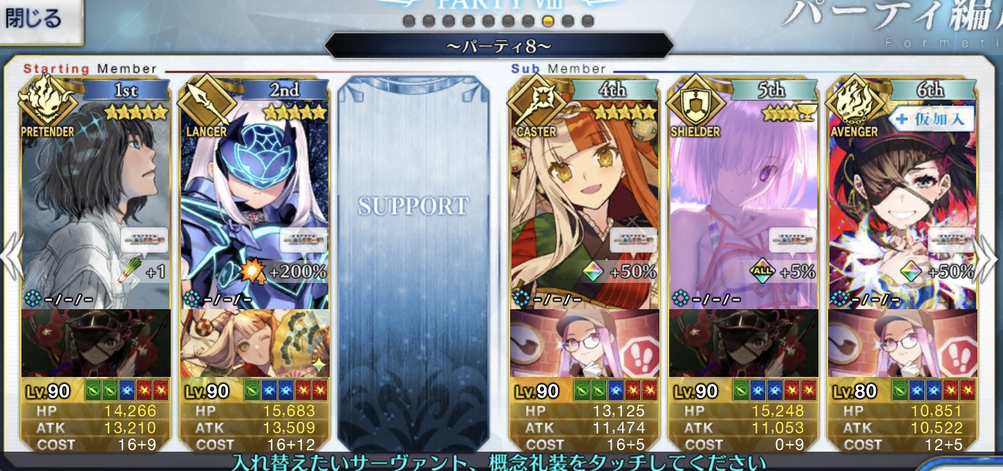沖田、ノッブ、ヒッジ、茶々、沖田オルタ(+煉獄)、龍馬(お竜さん)、以蔵さん、景虎ちゃん、森くん、卑弥呼様、一ちゃん、カッツと密密なんだよなあ……メカクレの鯖が悉く実装されなくて心のバーソロミューが嗚咽を上げはじめた