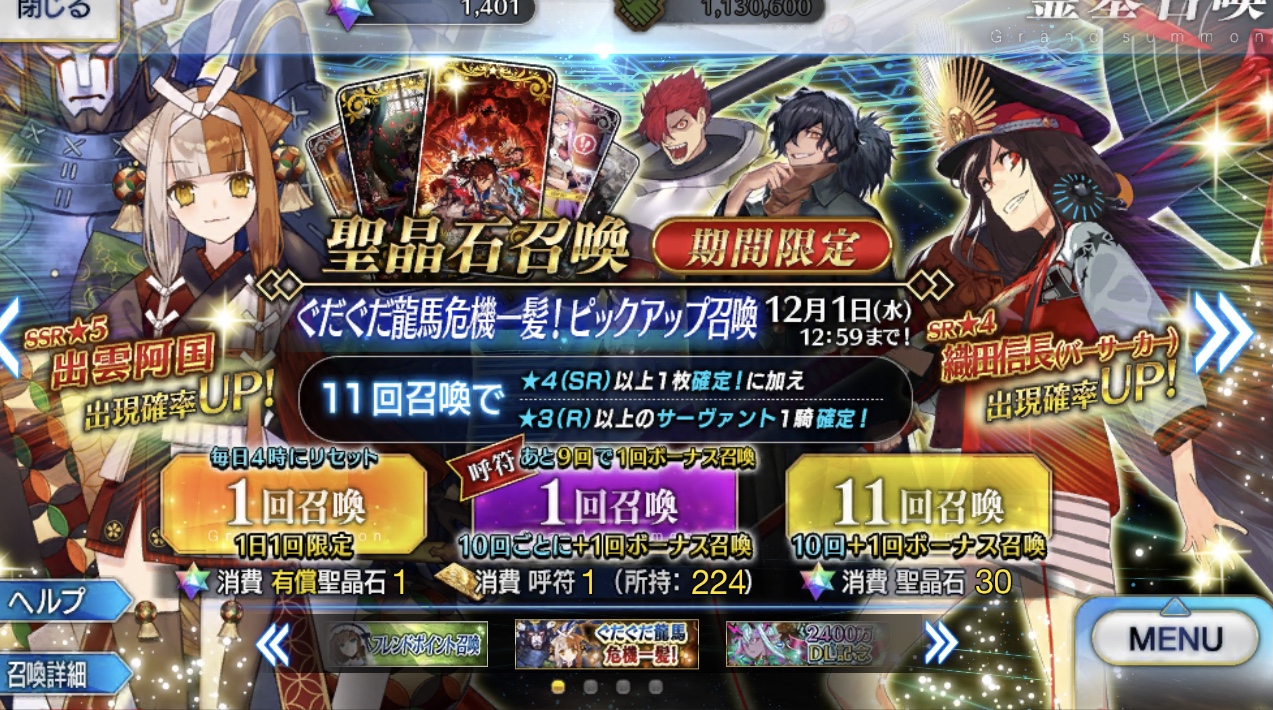 ただ未実装待機組の列は増えた。次の周年はぐだぐだ低レア一斉実装でいいんじゃないかな・・・。誰かお客様の中に聖杯とノッブヘッドをお持ちの方はいらっしゃいますか?