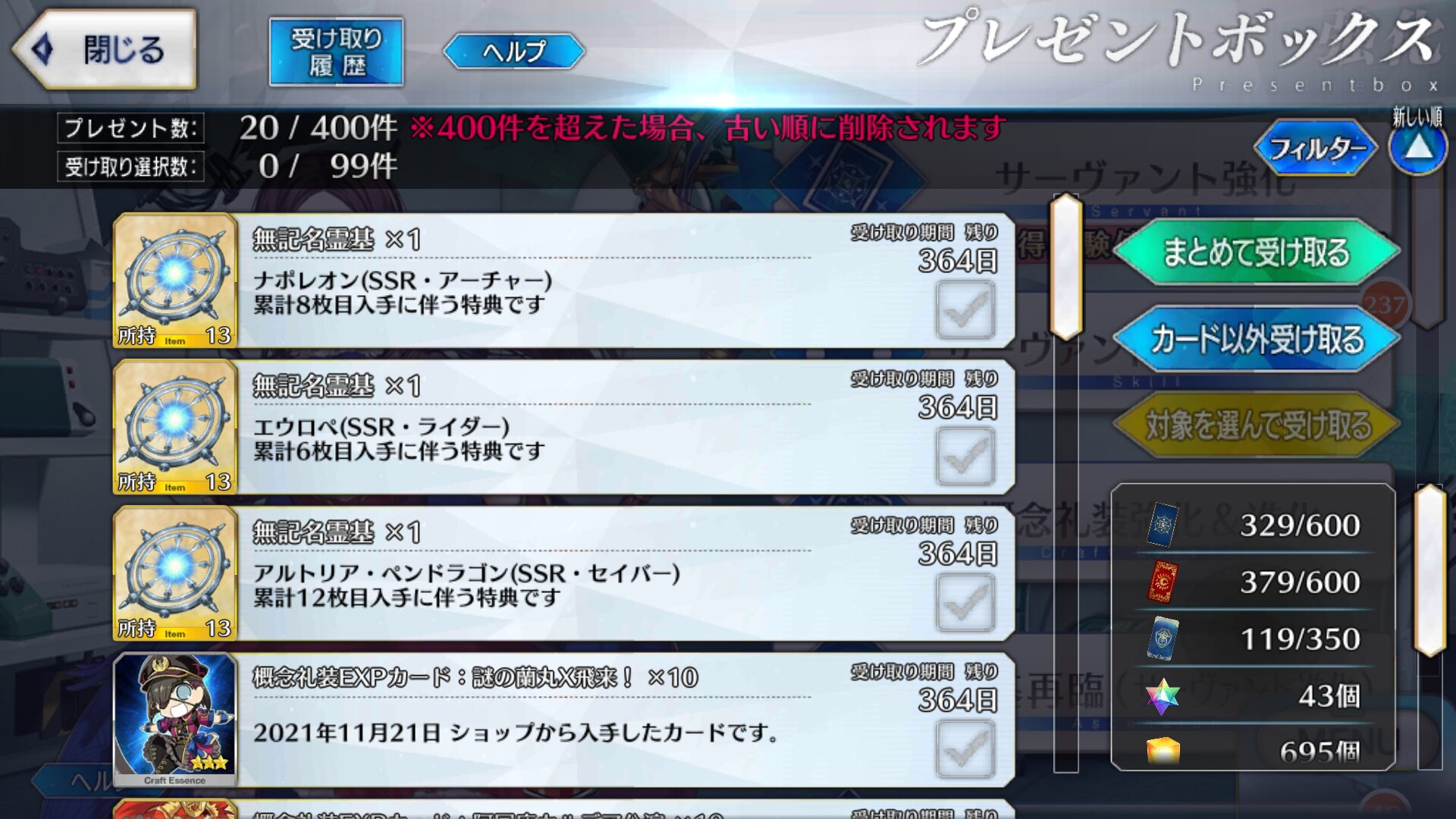 思い出深いのは英雄王からの鯖と初配布のハロエリちゃん。