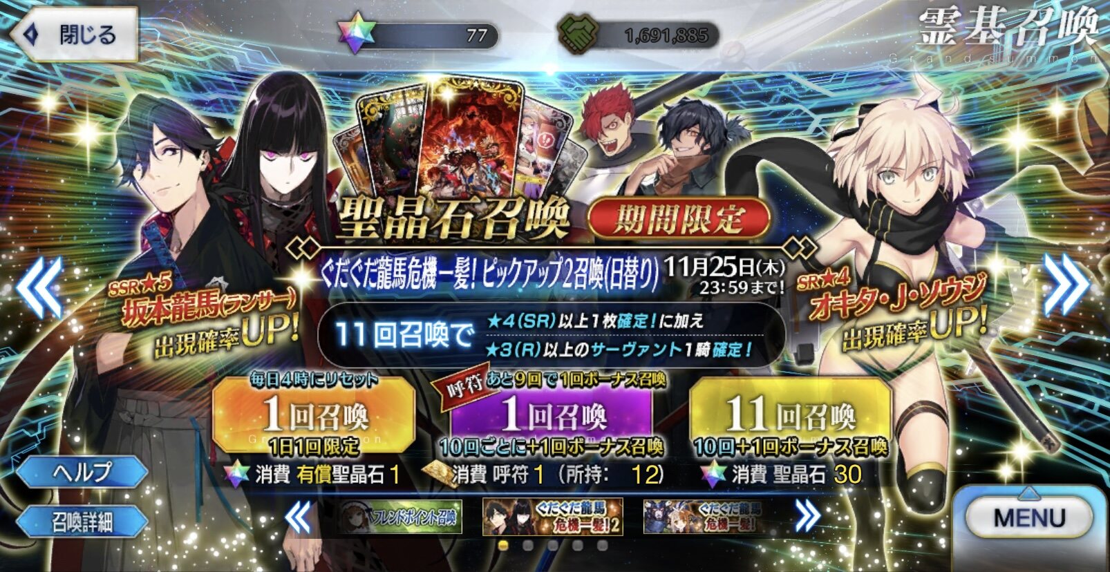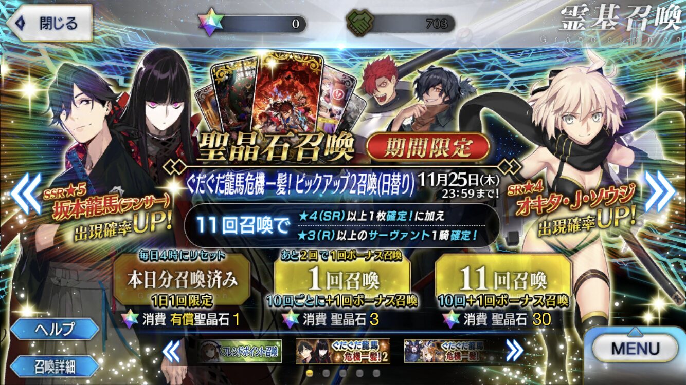 というかついててほしい、演出的にしごおわ産業……って言ってる場合じゃねぇッ!良い夫婦の日に槍坂本さん実装とは運営さん、粋なファンサービスするじゃない!!