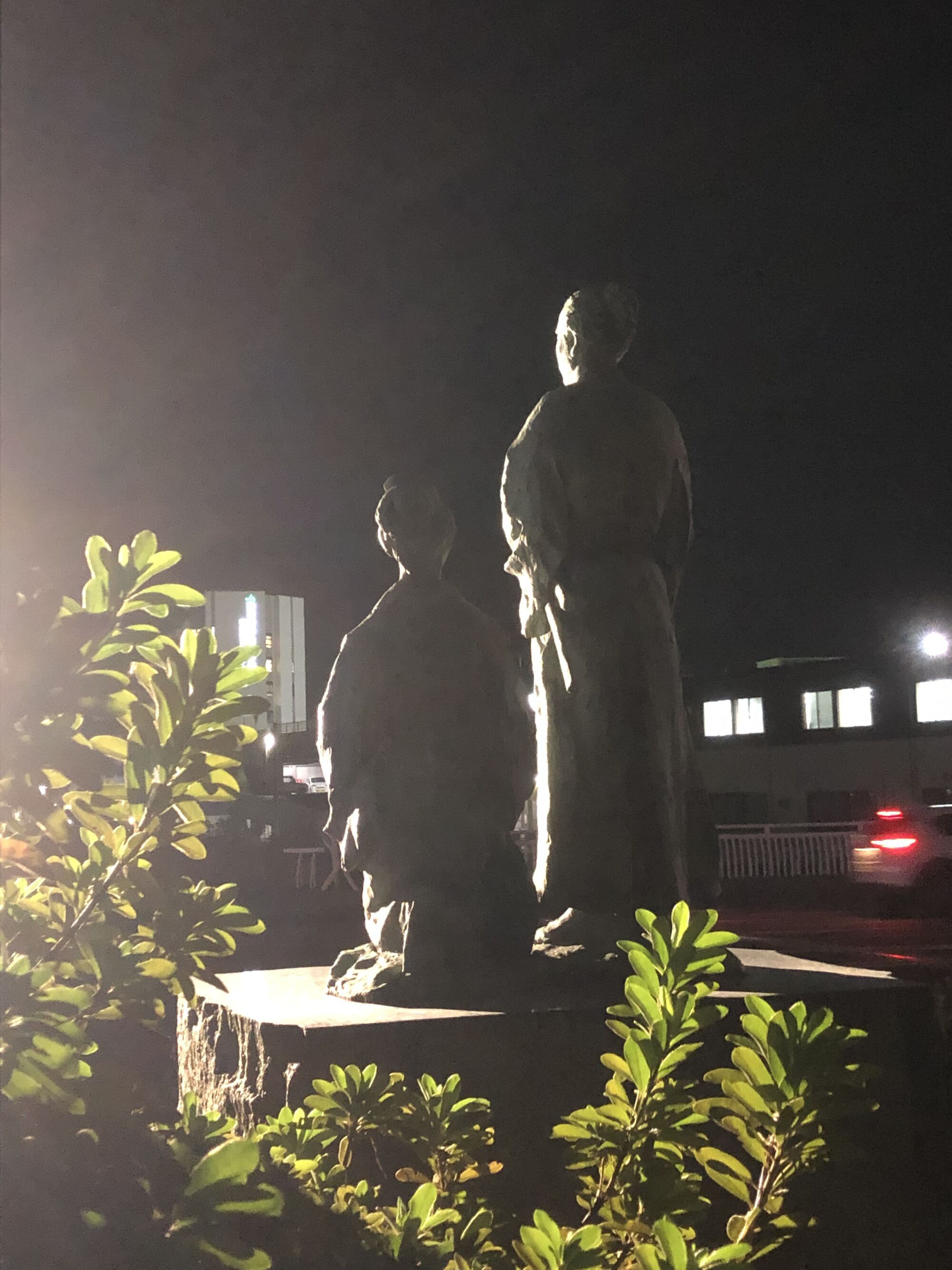 なんかよからぬ人らが入りそうな式場の前に巌窟王が立って