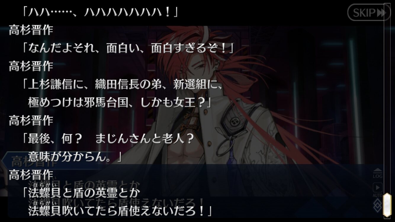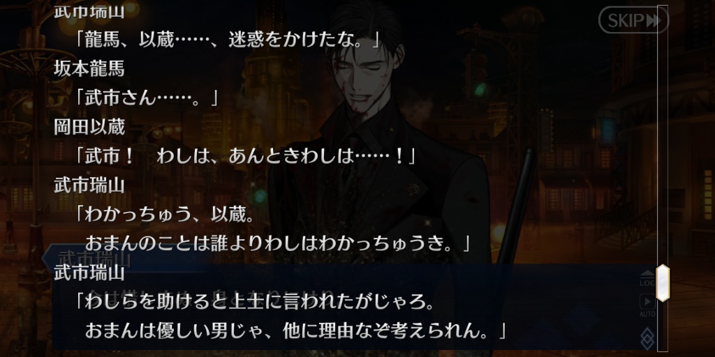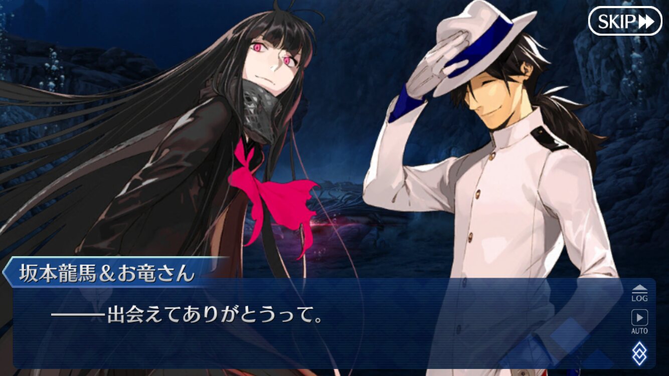 最終戦サポで選んで初手宝具でこれだからいきなり引いちまった・・・・と思った。海援隊で思い出して歌詞見たらもうお竜さん->龍馬にしか思えない