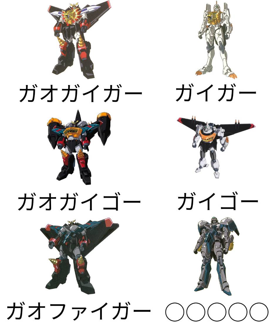 六人乗りの合体ロボットとか精神コマンド使いたい放題やんけ…武装は少なそうだからエルドラ枠って所か(スパロボ脳)
