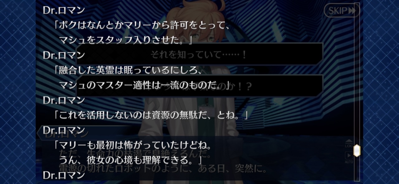 藤丸「そして、そのあとに生まれたのがマシュなのか。その過程で、雛型のマシュもいたかもしれない。いつかこんな風に日の目を見るのかもしれないね」たておつ
