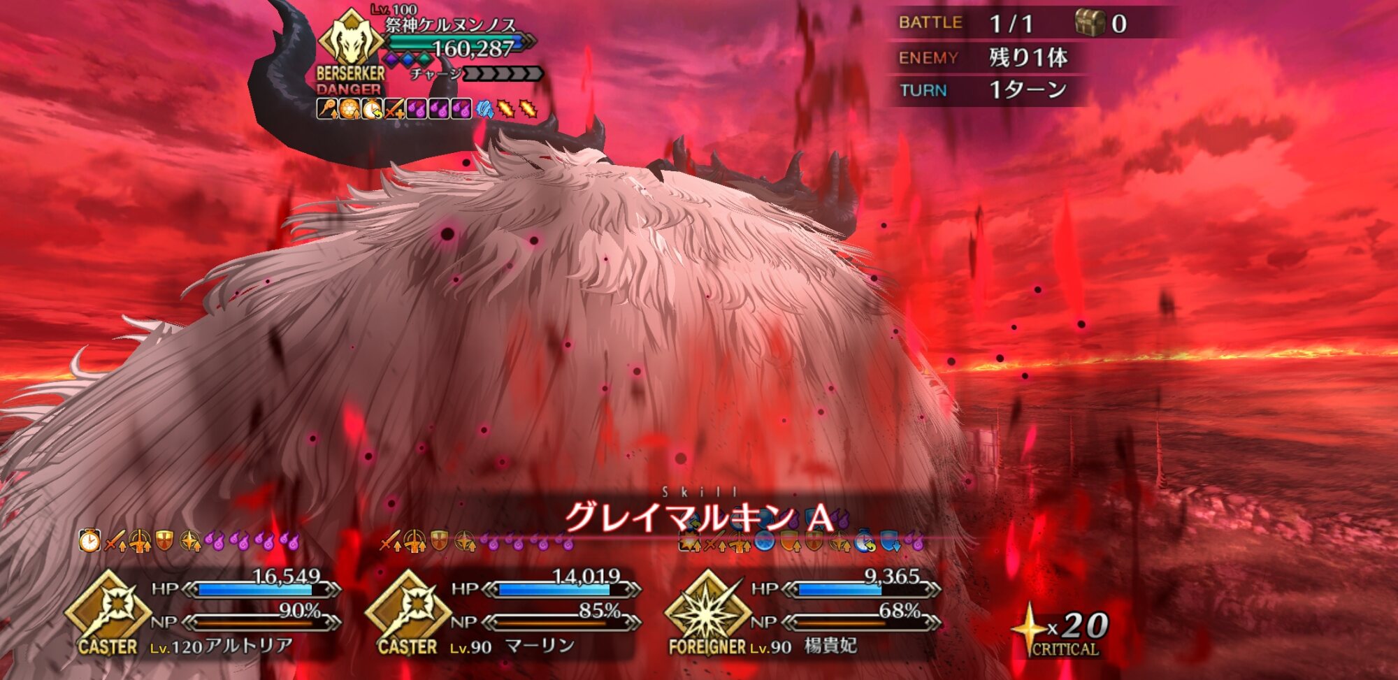 キャストリアのバフを受けやすいA単体ってのも二重丸ケルヌンノス戦は水着BBでカード固めて卑弥呼様で星とバフばら撒いてゴリオンで殴り倒した記憶しかないけど、呪い以外にも呪層汚染のHP減でもガリガリ削られるから回数無制限複数ターンの弱体無効持ちいないとキツいのよね