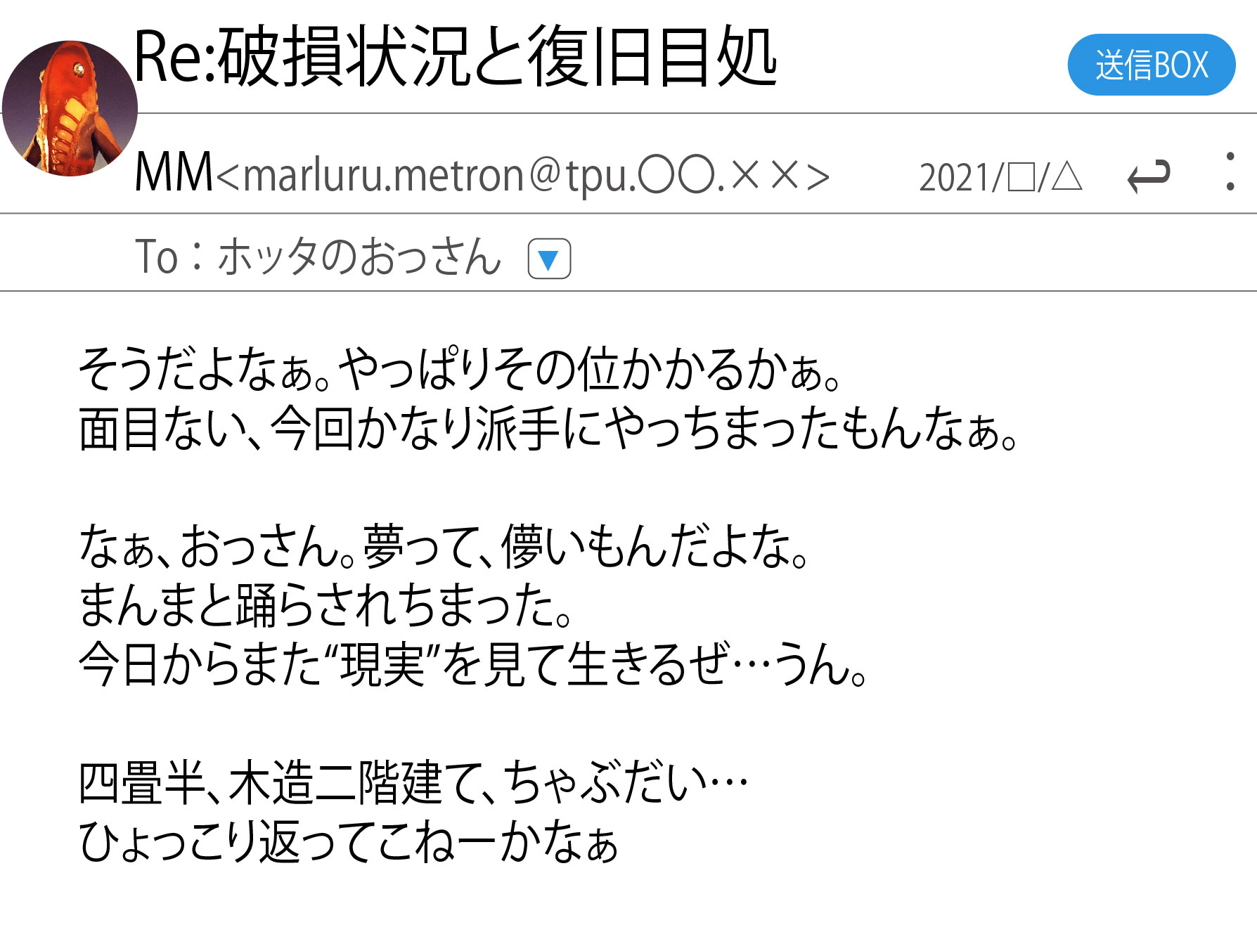 頭のマスク外してもシルエット変わらないってコメントで噴き出した思い出好きな負け惜しみ